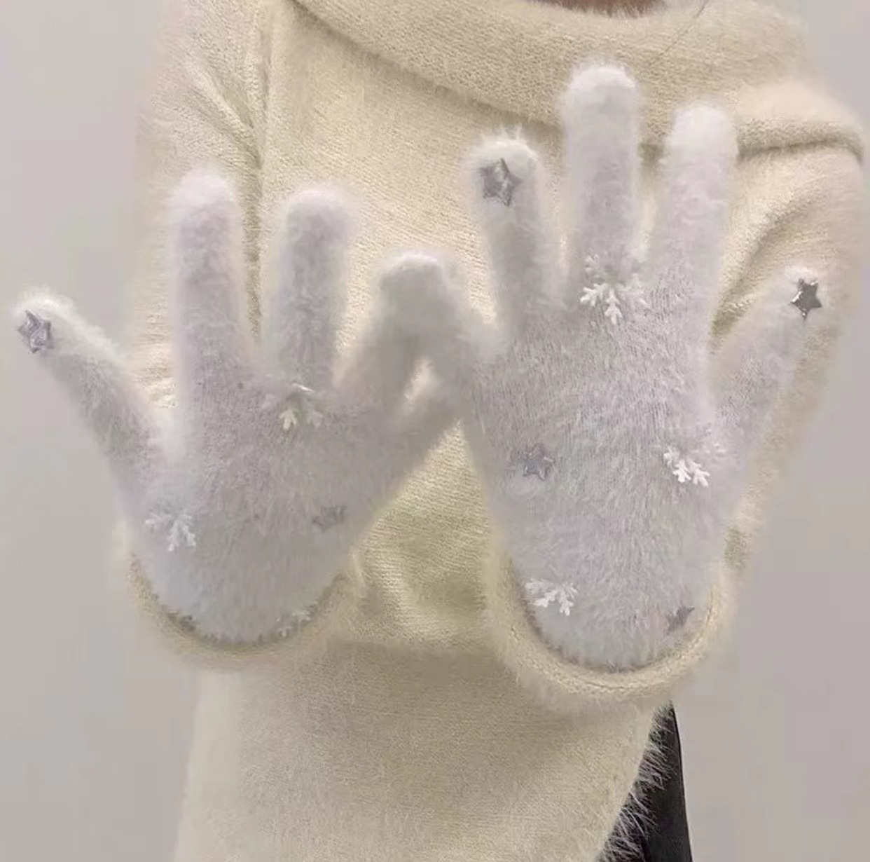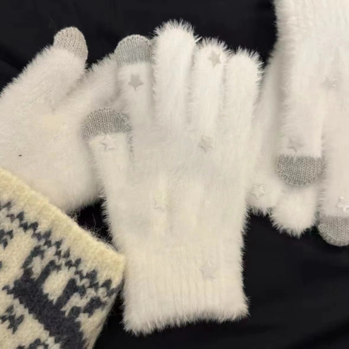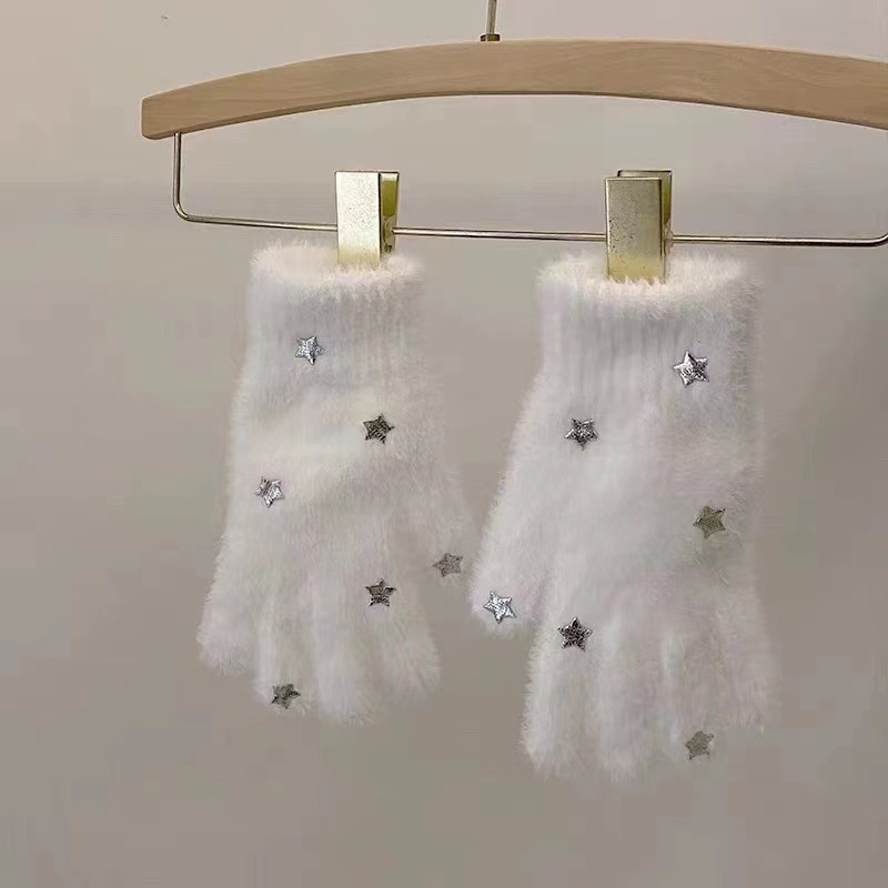 이른 눈 별 장갑 겨울 여학생 손가락 장갑을 타고 귀여운 기모 두꺼운 따뜻한 방한 밍크 벨벳