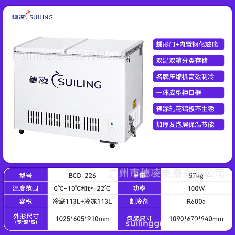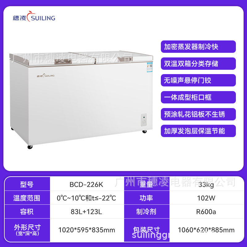 Suiling 스팟 냉동고 상업용 냉동고 이중 온도 이중 상자 수평 냉장고 소형 가정용 냉장 보존 캐비닛 냉동고