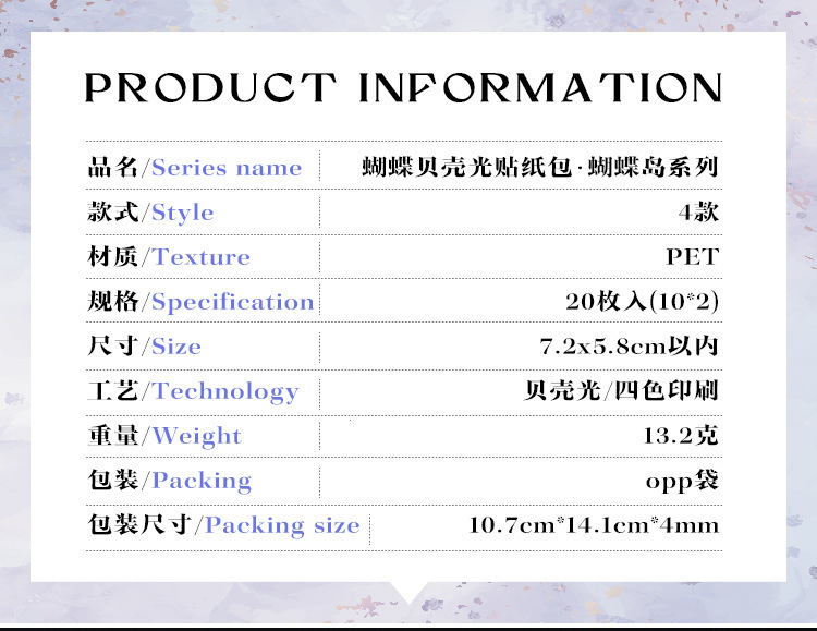 Yuxian 쉘 라이트 애완 동물 스티커 가방 나비 섬 시리즈 라이트 레트로 저널 구 카드 DIY 소재 장식 스티커