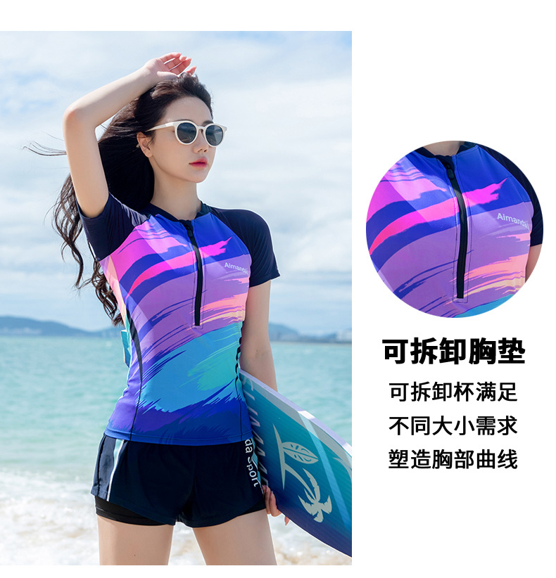 2024 새로운 여성 수영복 플러스 사이즈 스포츠 인쇄 스티칭 수영복 분할 복서 섹시한 통통녀 온천 수영복