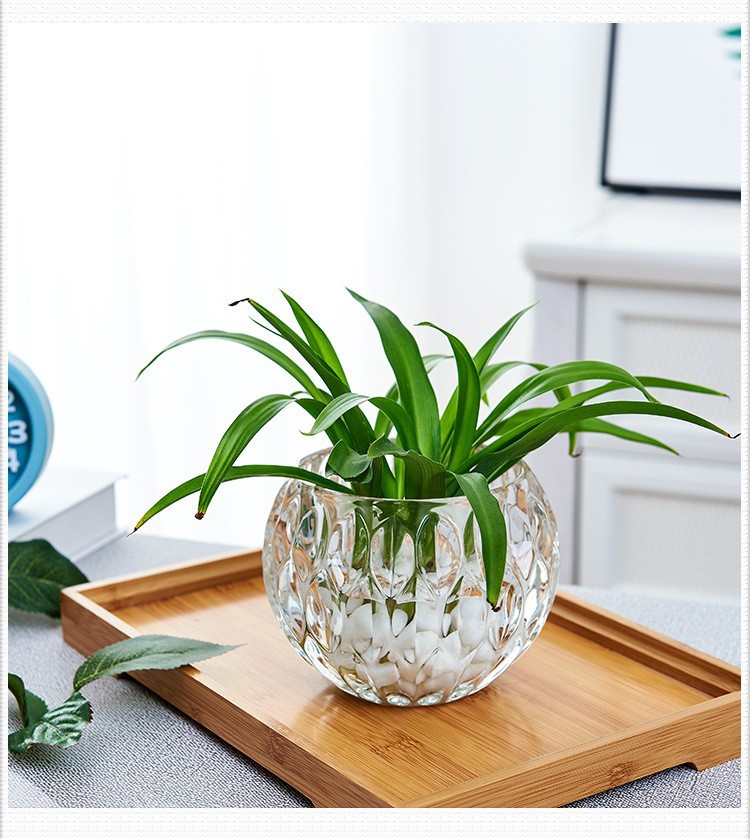 간단한 창조적 인 크리스탈 유리 꽃병 장식 수경 식물 병 투명 꽃 장치 녹색 무 구리 잔디 꽃 냄비 도매