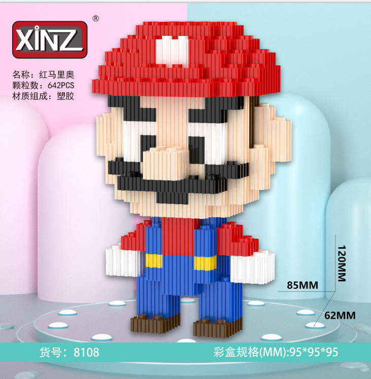 만화 마리오 시리즈 조립 장난감 소년 소녀 휴일 생일 선물을위한 어린이 교육 빌딩 블록