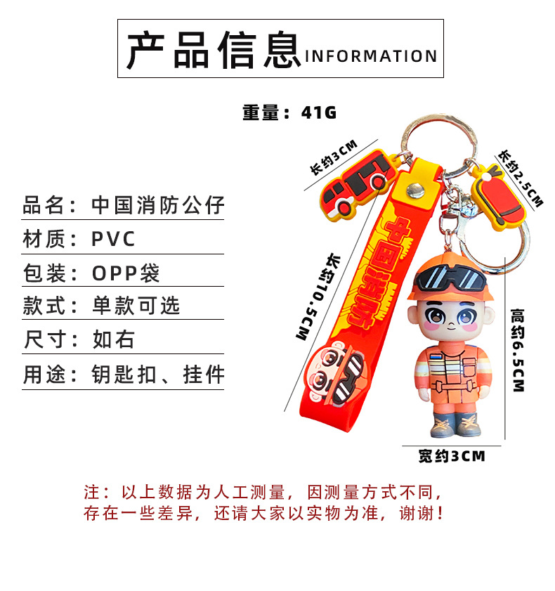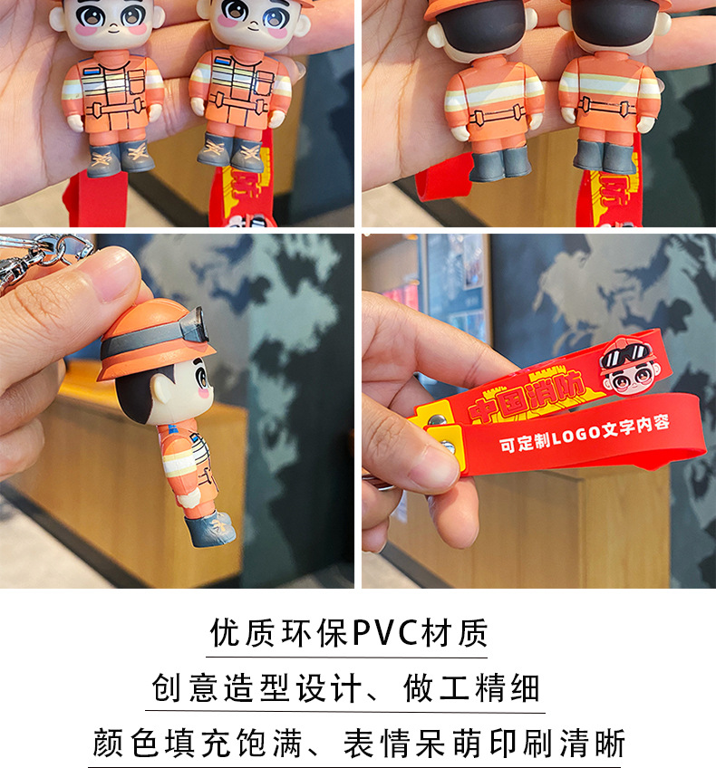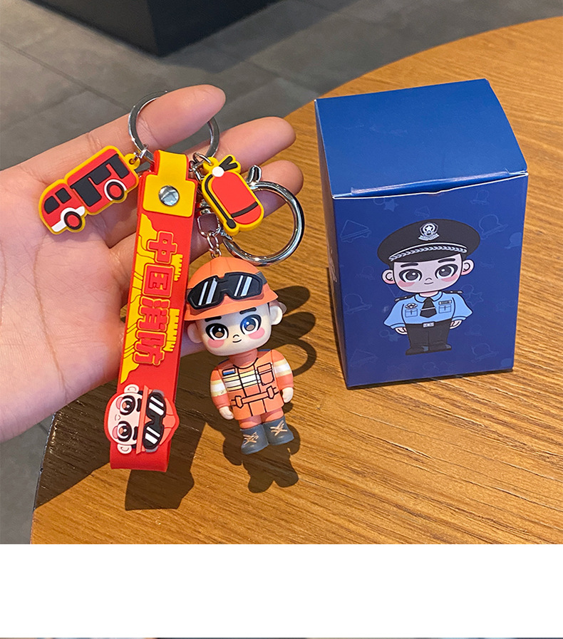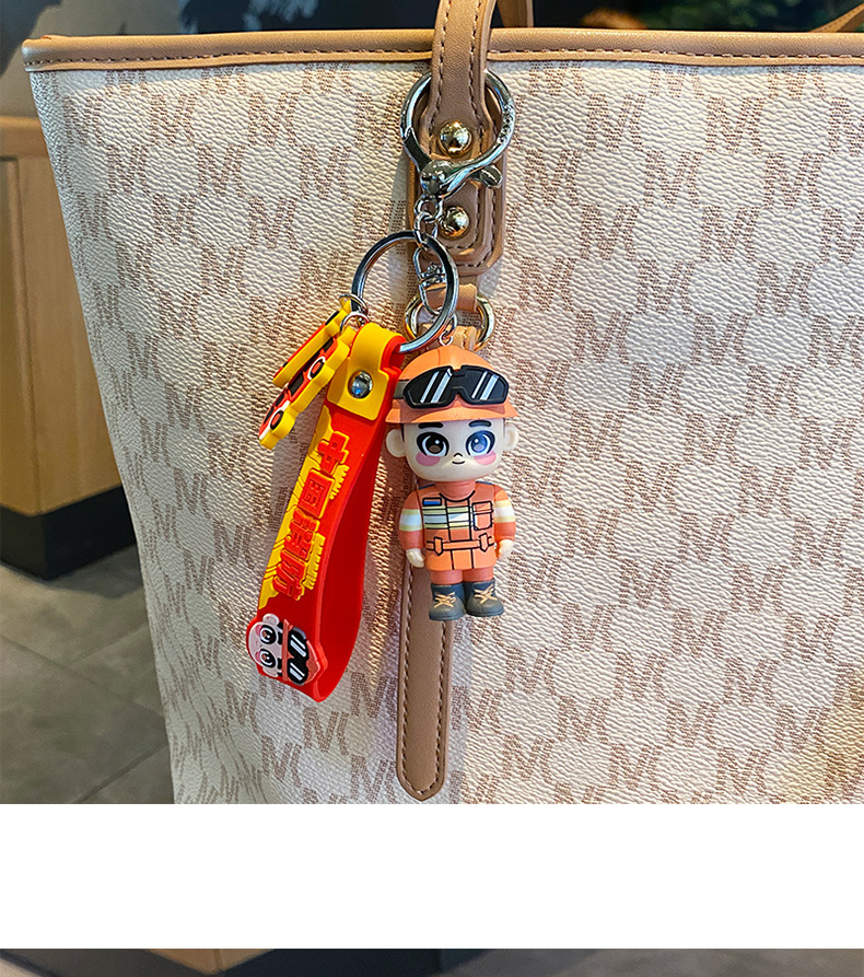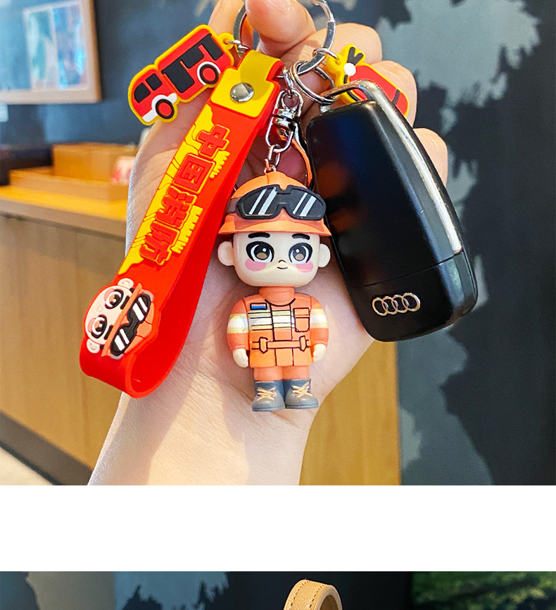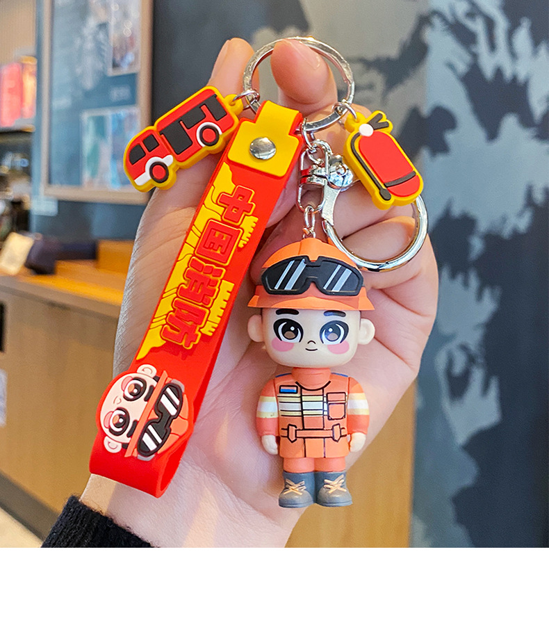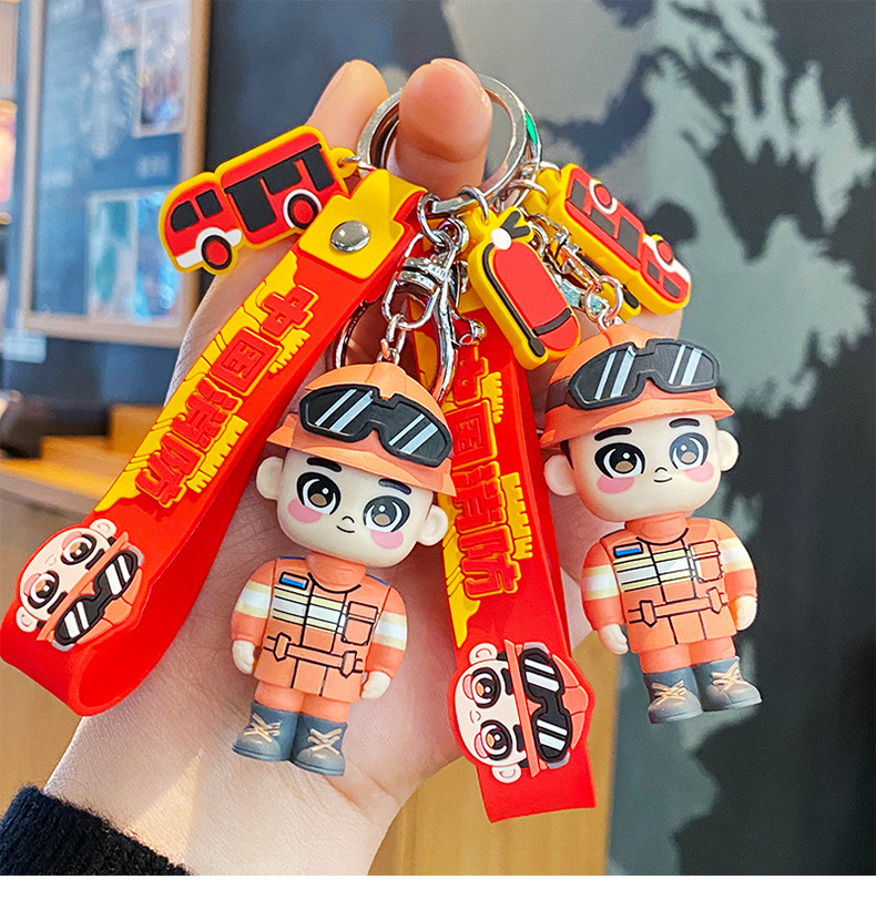 만화 소방관 인형 키 체인 펜던트 창조적 인 성격 가방 장식품 남성과 여성의 자동차 열쇠 고리 작은 보석