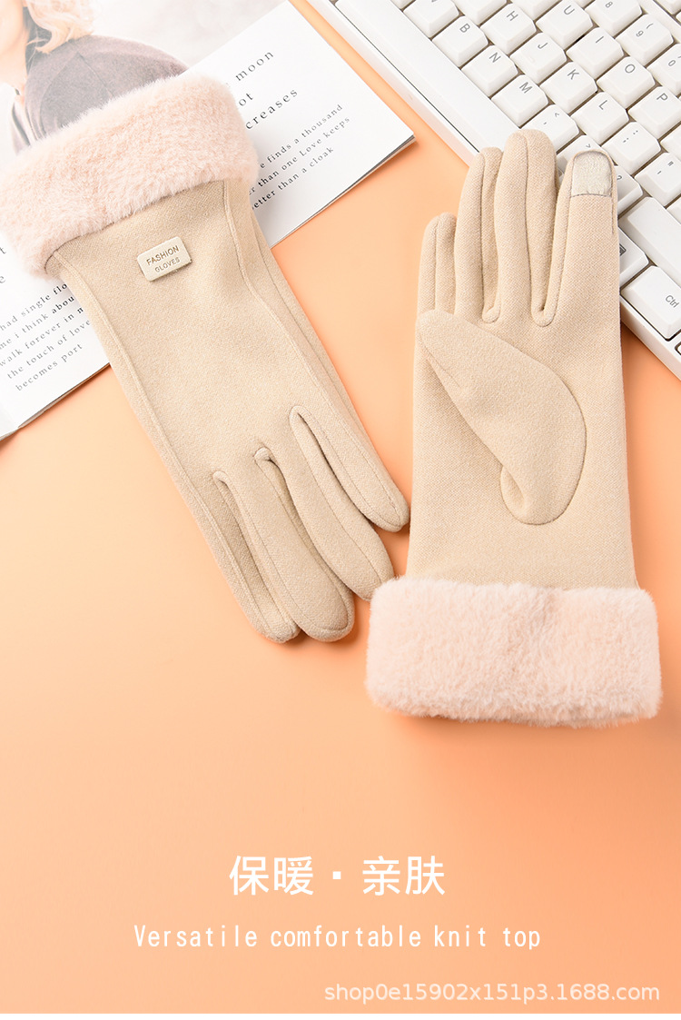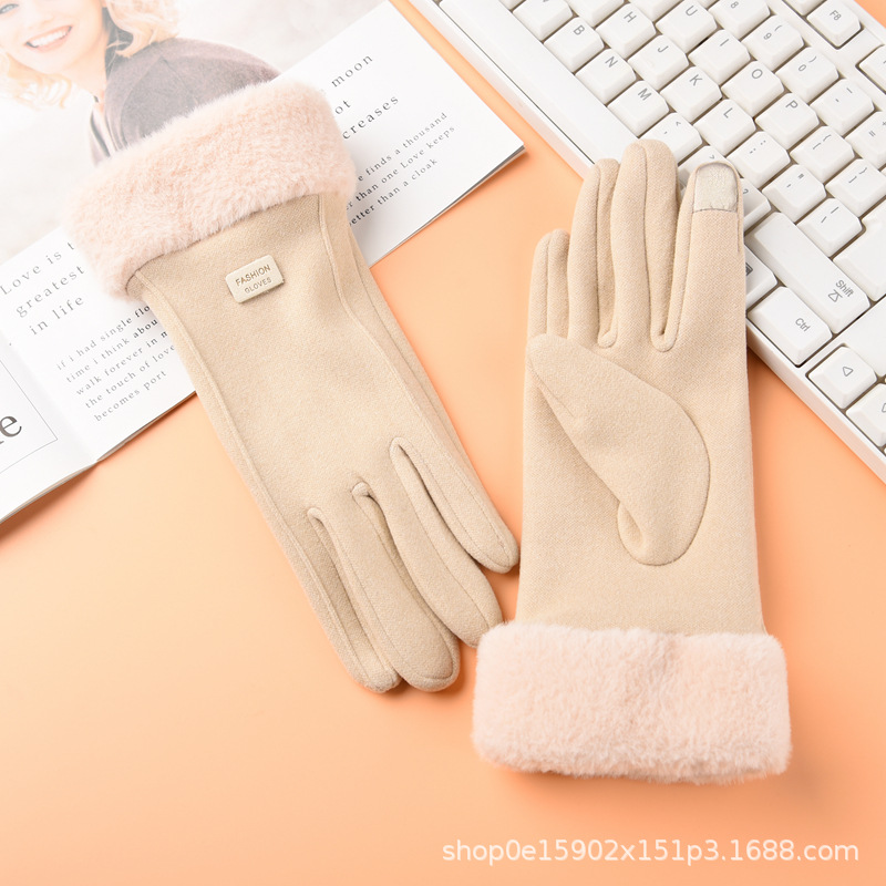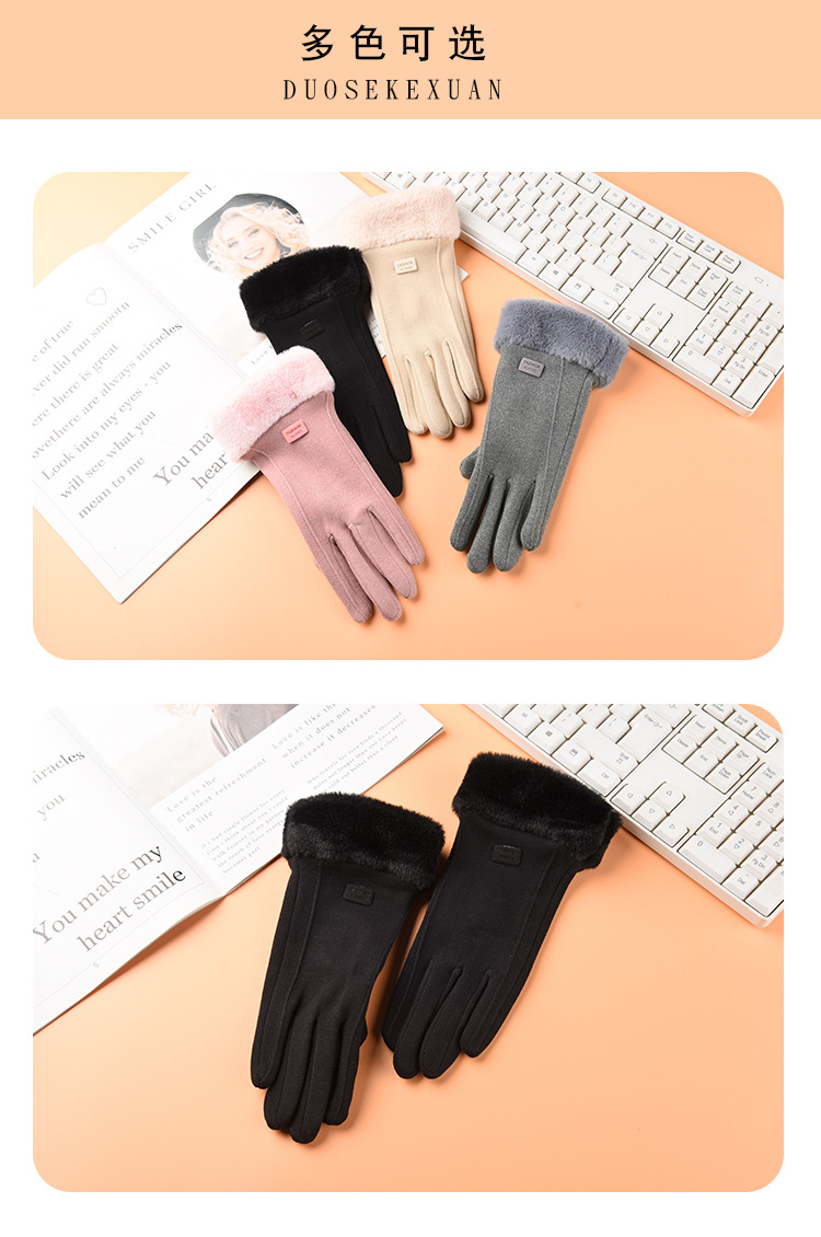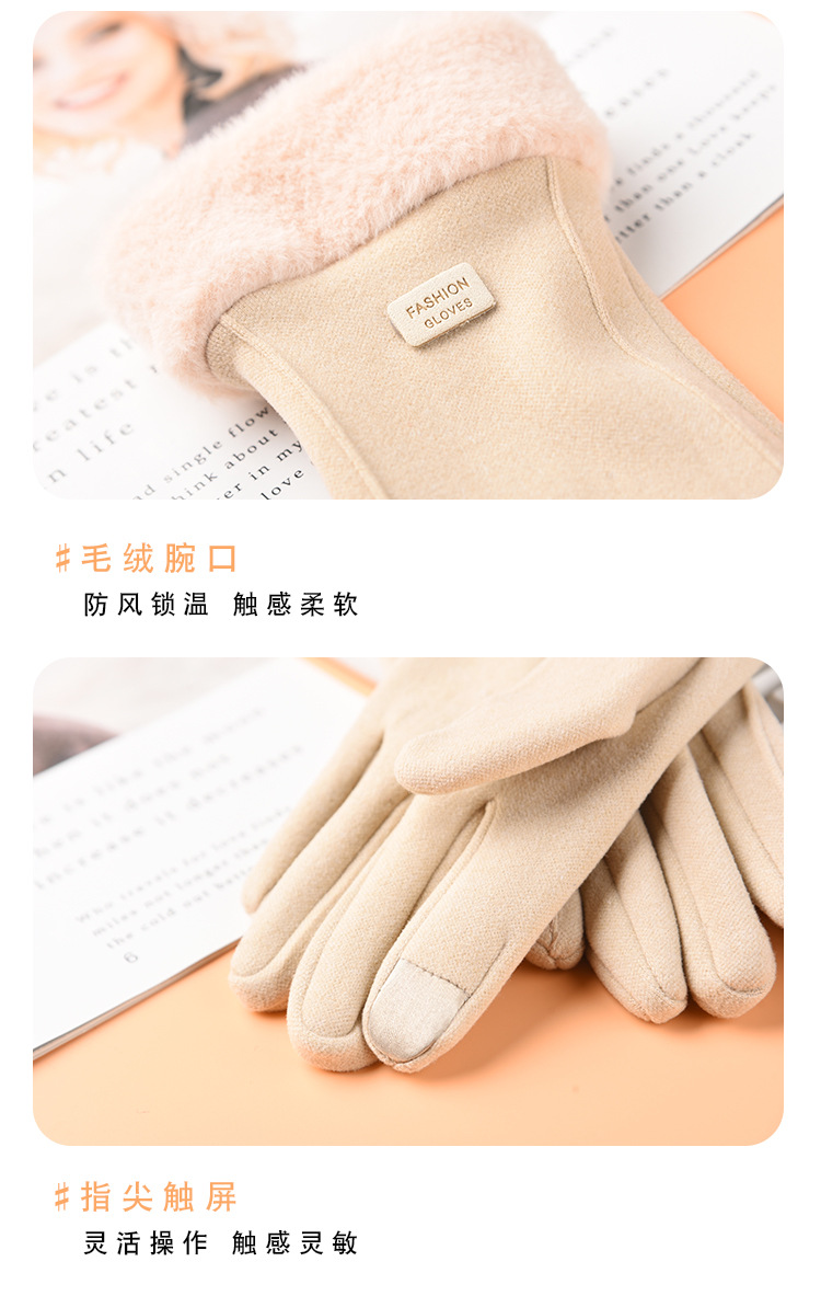 23 년 여성 드 벨벳 가을과 겨울 야외 따뜻한 방한 기모 승마 장갑 손가락 터치 스크린 미끄럼 방지
