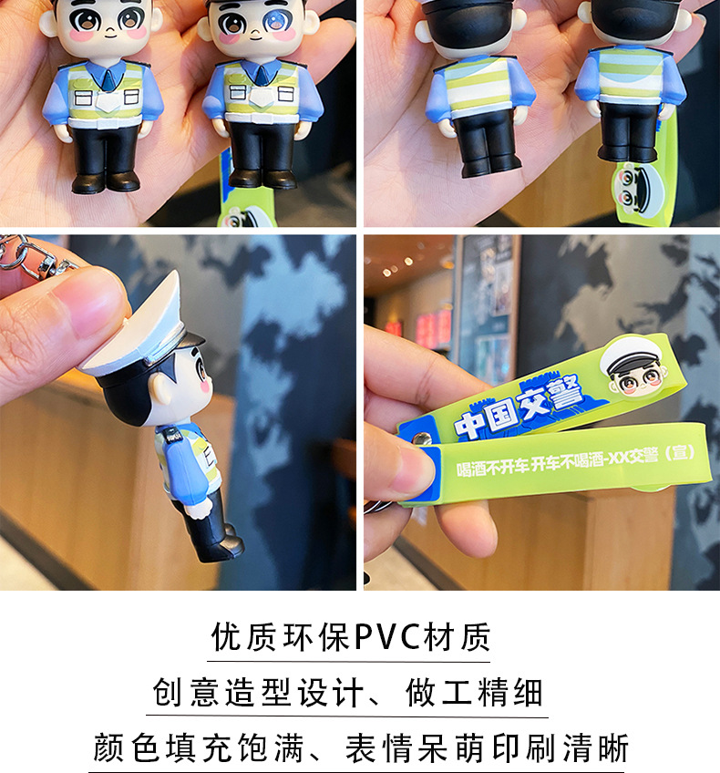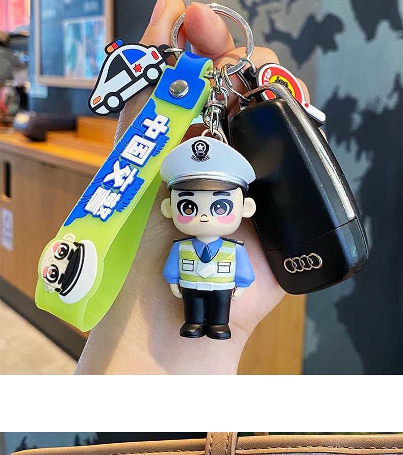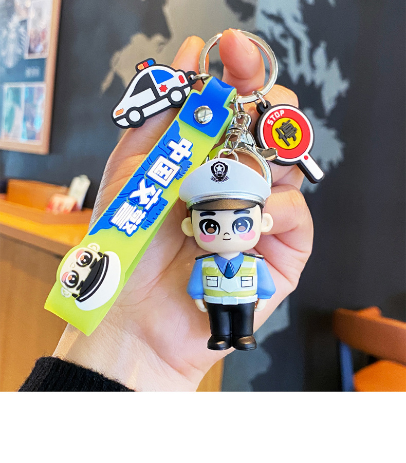 만화 경찰 인형 키 체인 펜던트 경찰 교통 경찰 아저씨 인형 손으로 만든 절묘한 가방 장식품 기념품스토어 가기