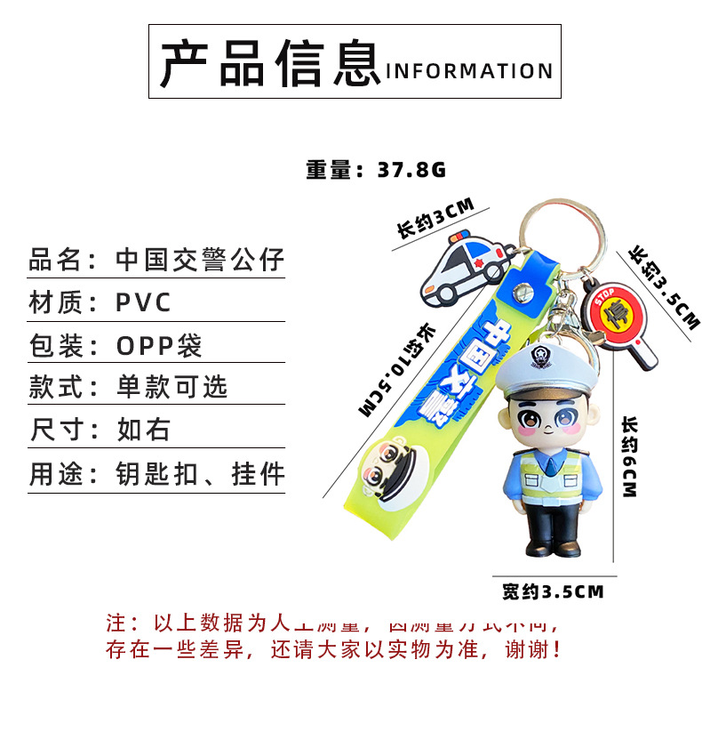 만화 경찰 인형 키 체인 펜던트 경찰 교통 경찰 아저씨 인형 손으로 만든 절묘한 가방 장식품 기념품