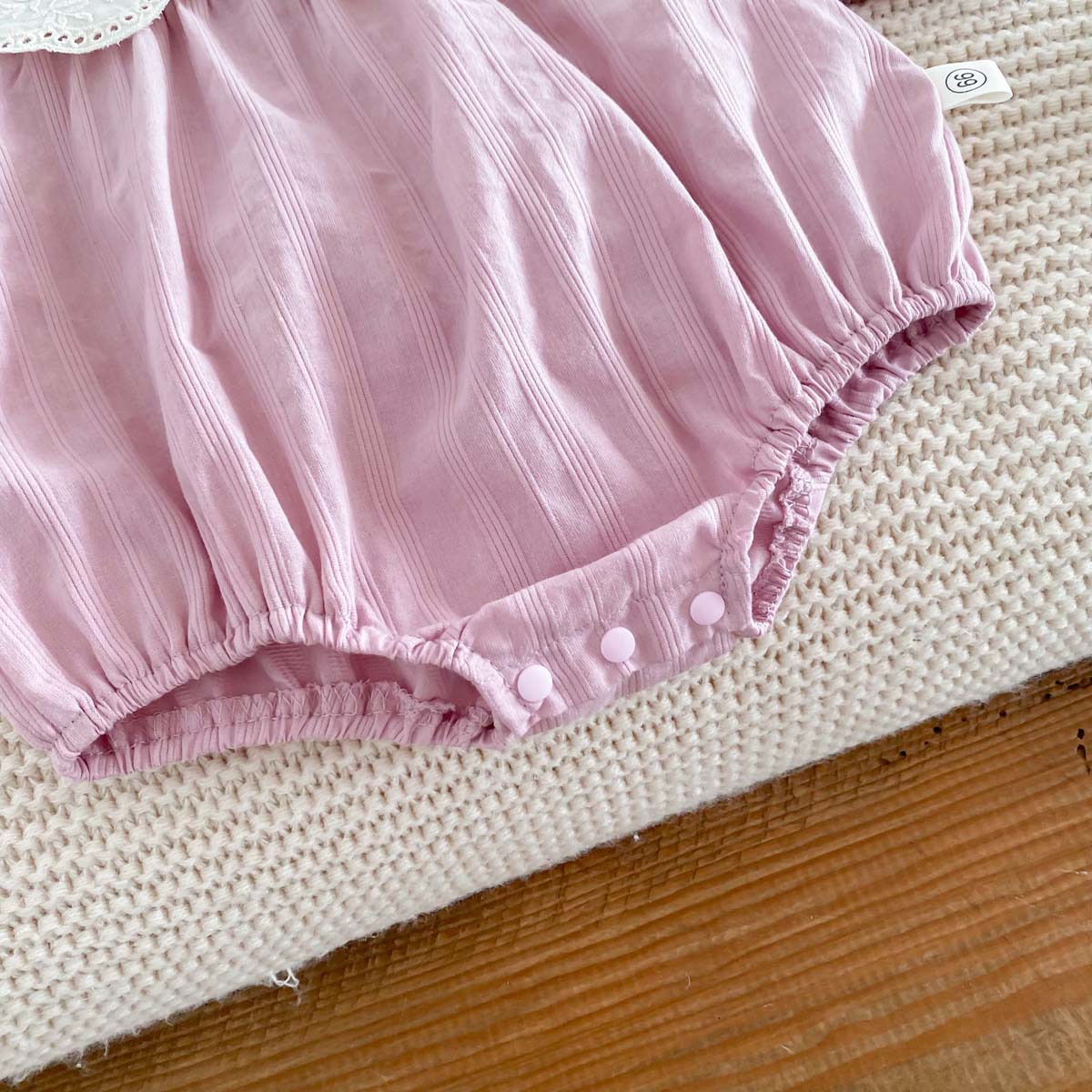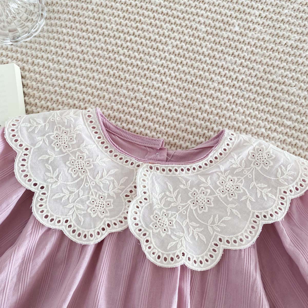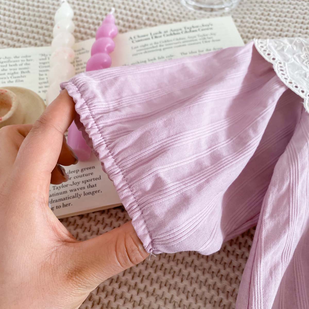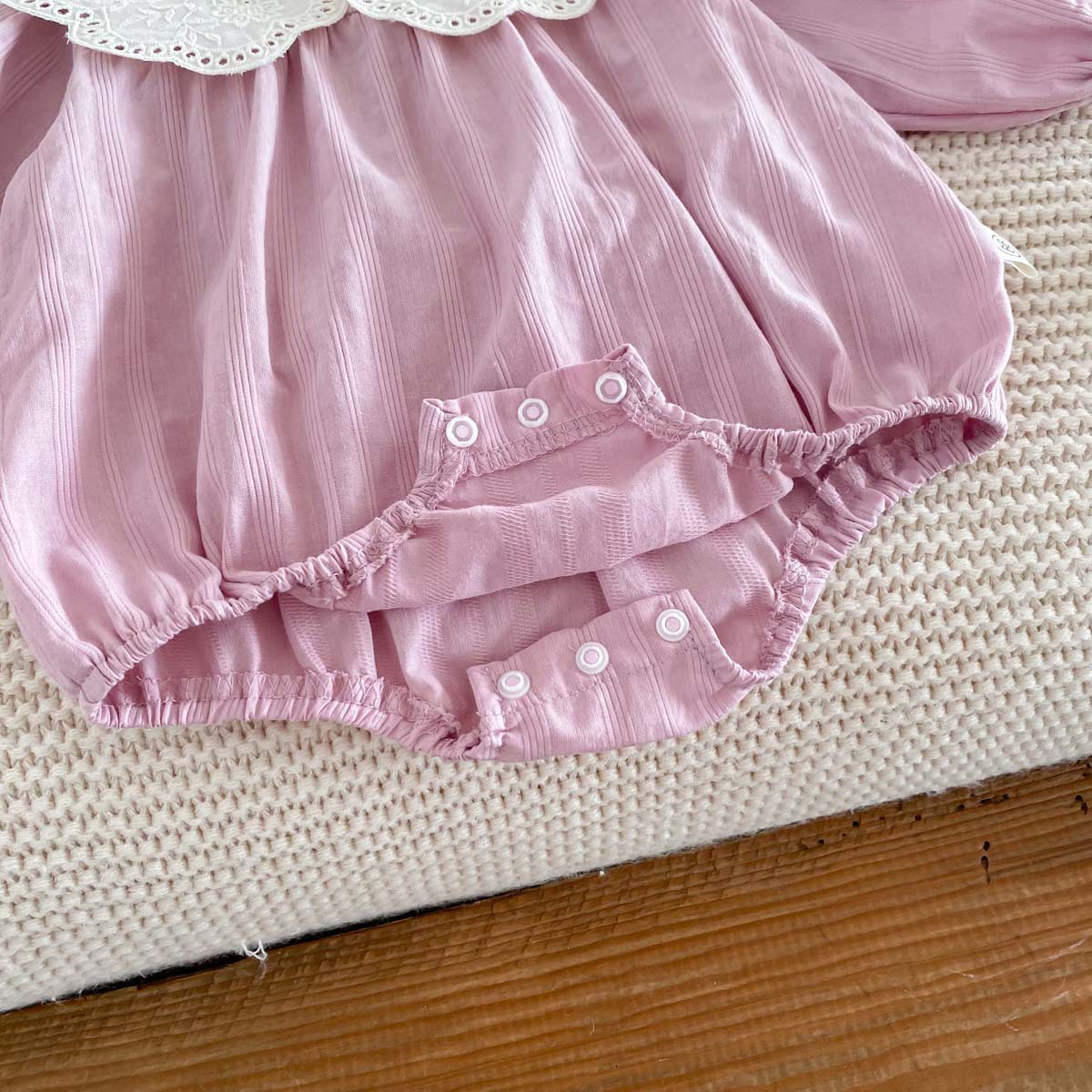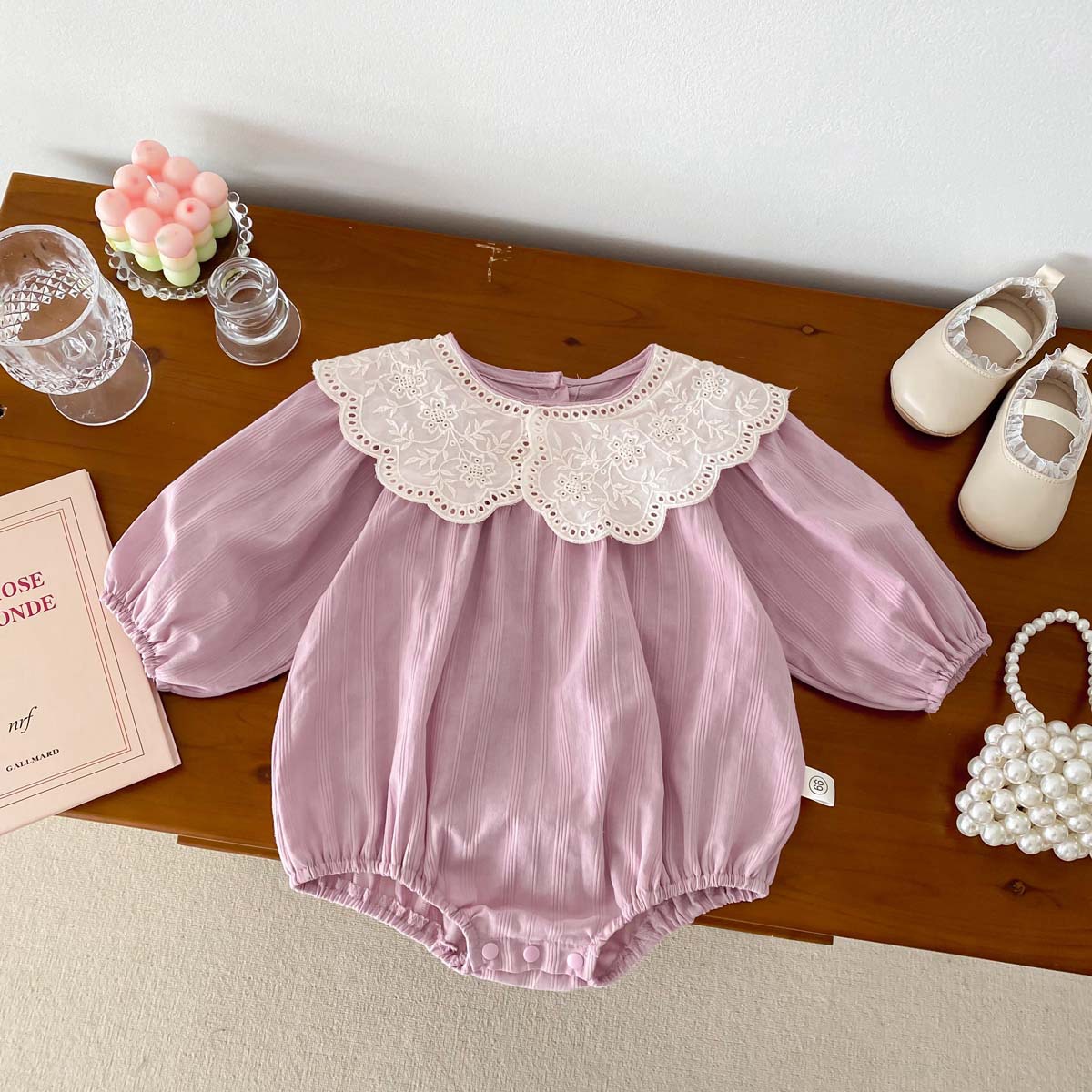 아기옷 봄가을 스타일, 멋스러운 큰 카라 바디슈트, 신생아 여아 보라색 백일촬영 외출복