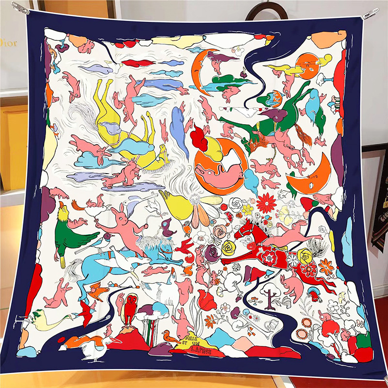 대형 스퀘어 스카프 90cm 선물 스카프 패션 만화 토끼 트렌드 스카프 외부 장식 국경 스카프 도매스토어 가기