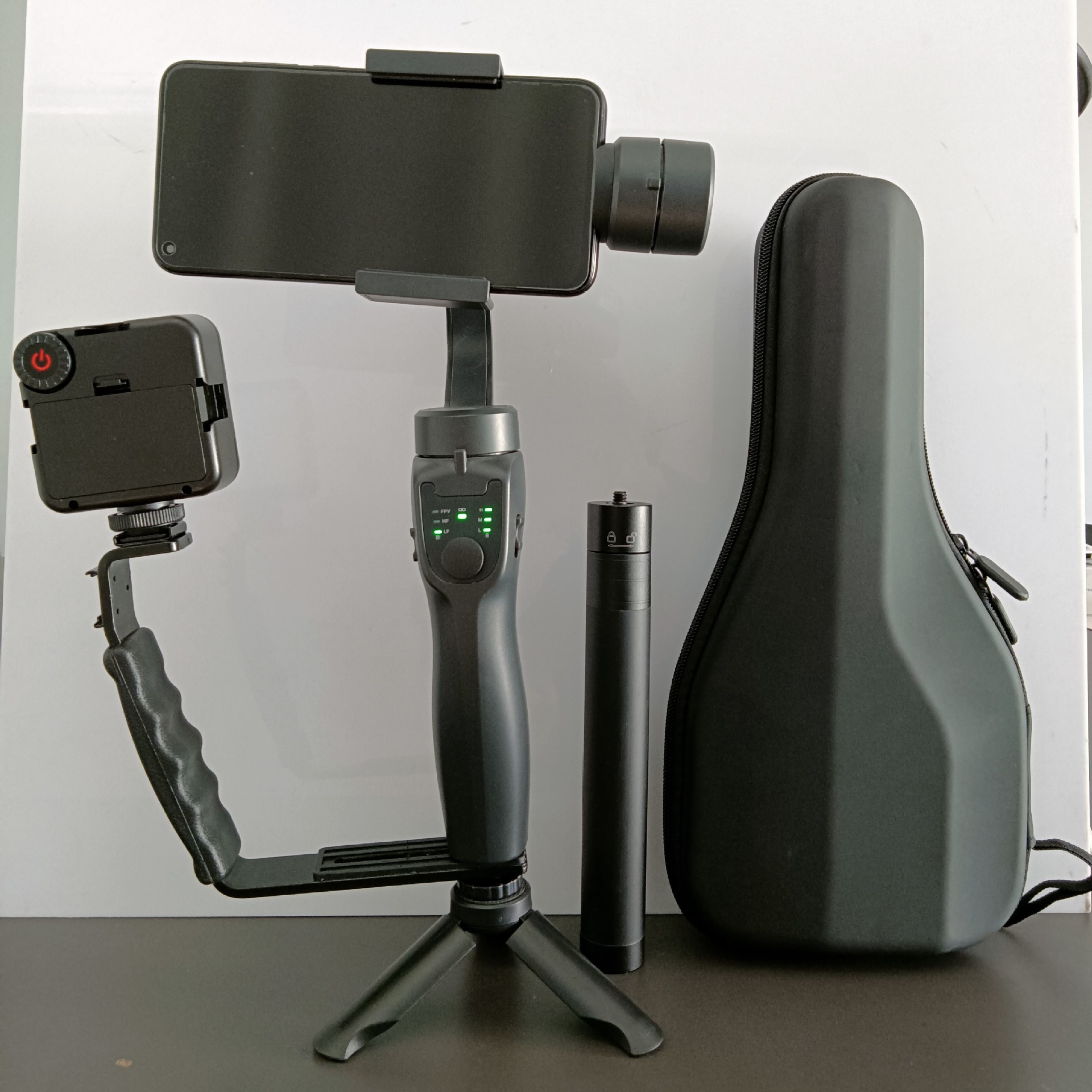 • F6 안정제 (수평 스크린 사진) + 저장 가방 + 대형 삼각대 + 확장로드 + L 자형 브래킷 + LED 조명