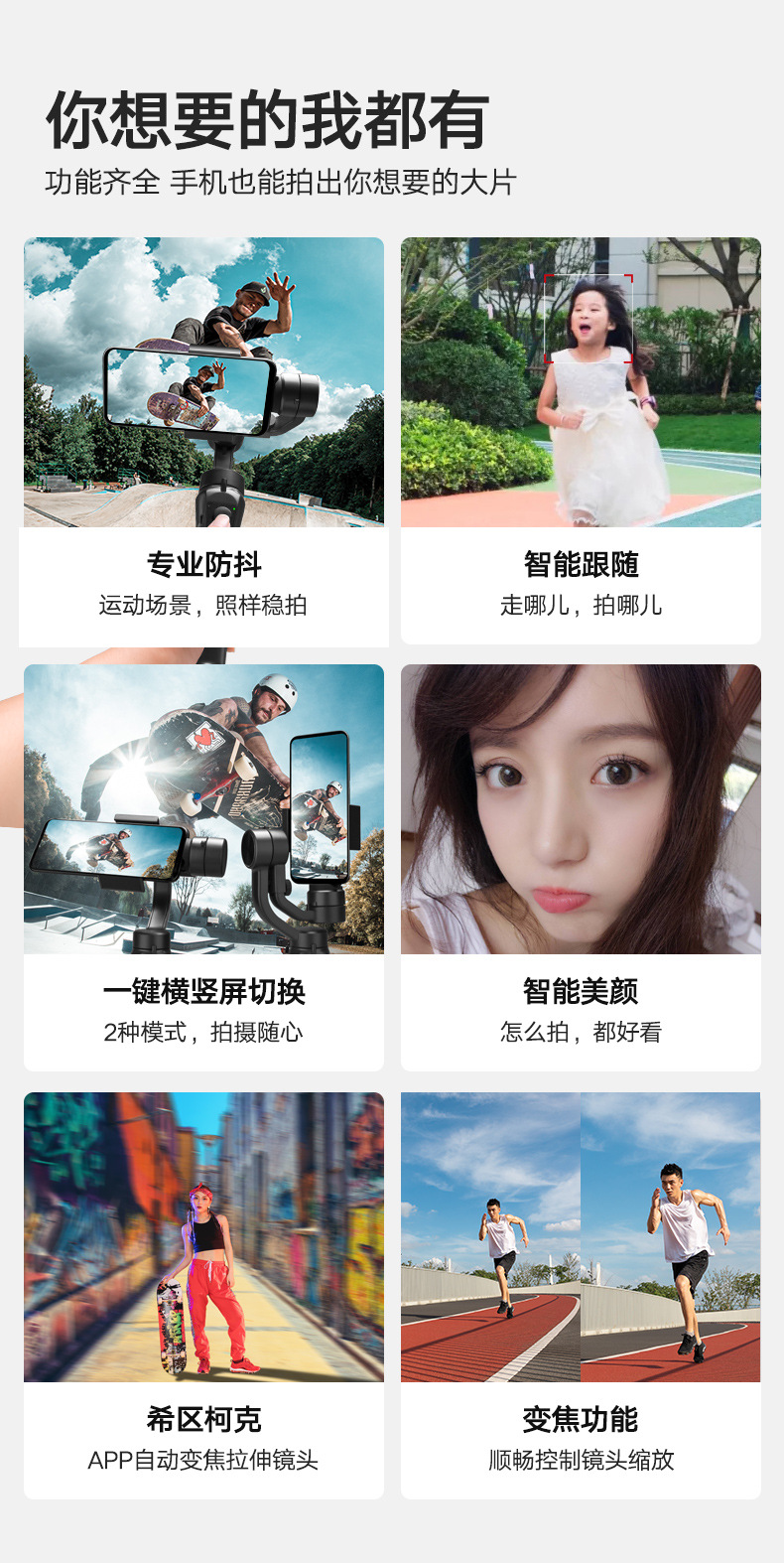 휴대 전화 3 축 안정기 지능형 얼굴 및 비디오 vlog 촬영 안티 쉐이크 셀카 스틱 핸드 헬드 PTZ 안정기스토어 가기