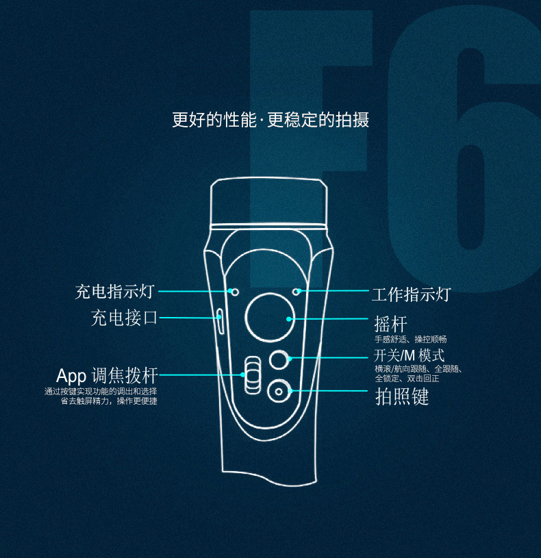 • F6 안정제 (수평 스크린 사진) + 저장 가방 + 대형 삼각대 + 확장로드