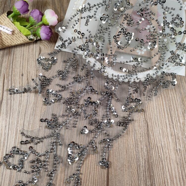새로운 진주 다이아몬드 꽃 3 차원 자수 꽃 결혼식 원피스 어린이 의류 소재 DIY 액세서리 천 스티커