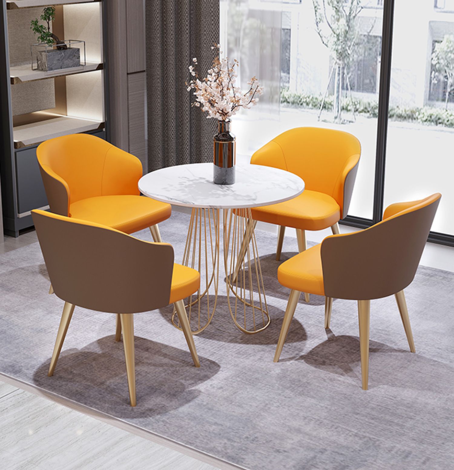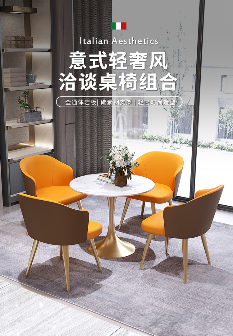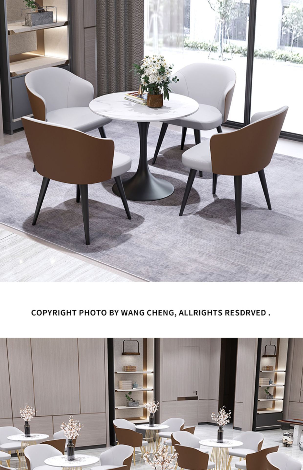 협상 테이블과 의자 조합 가벼운 고급 레스토랑 호텔 로비 회의 손님 1 테이블 4 개의 의자 휴식 공간 레저 테이블과 의자 작은 라운드 테이블스토어 가기