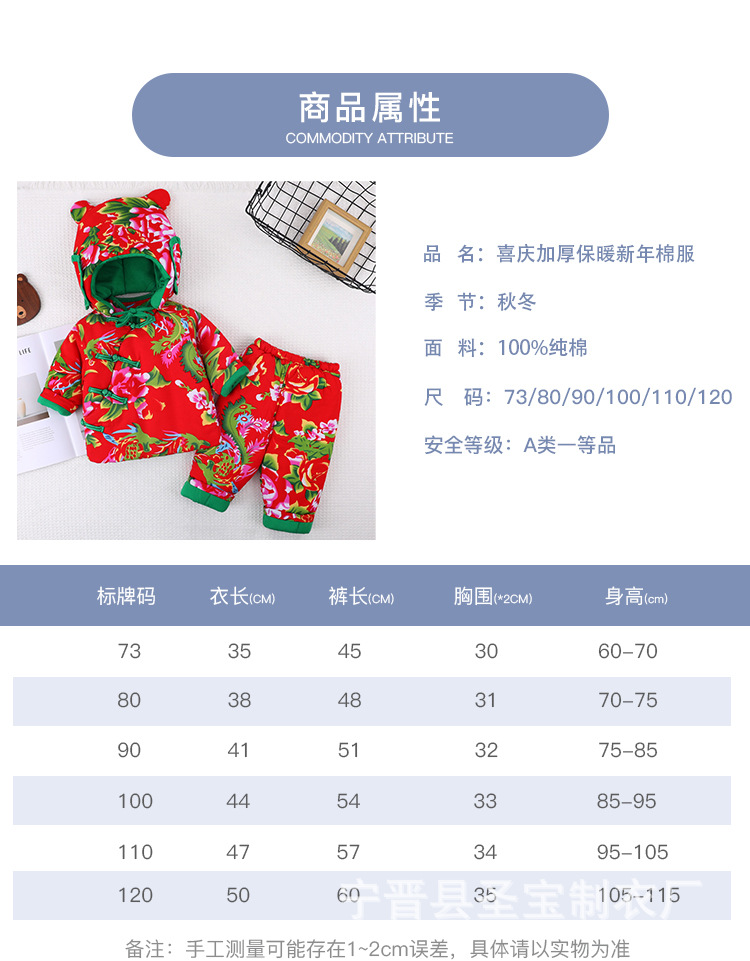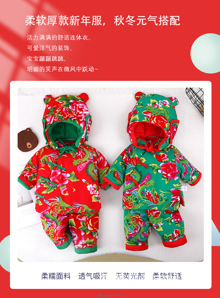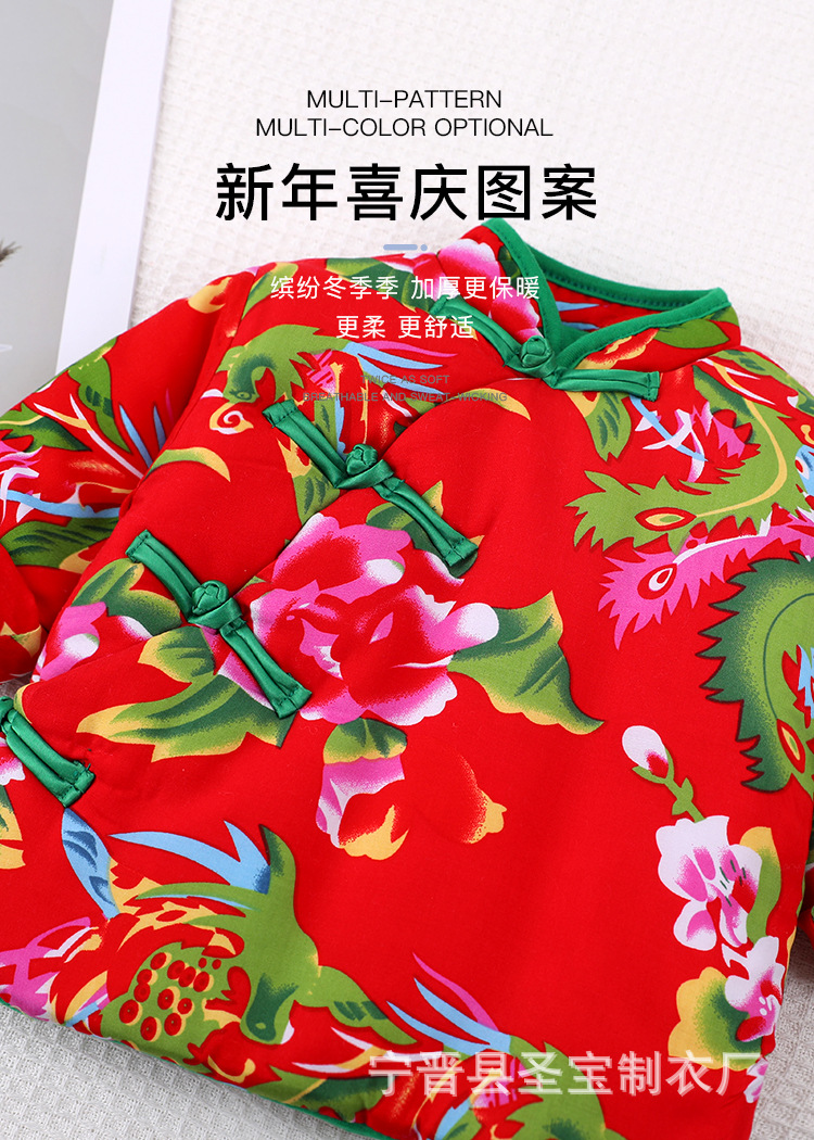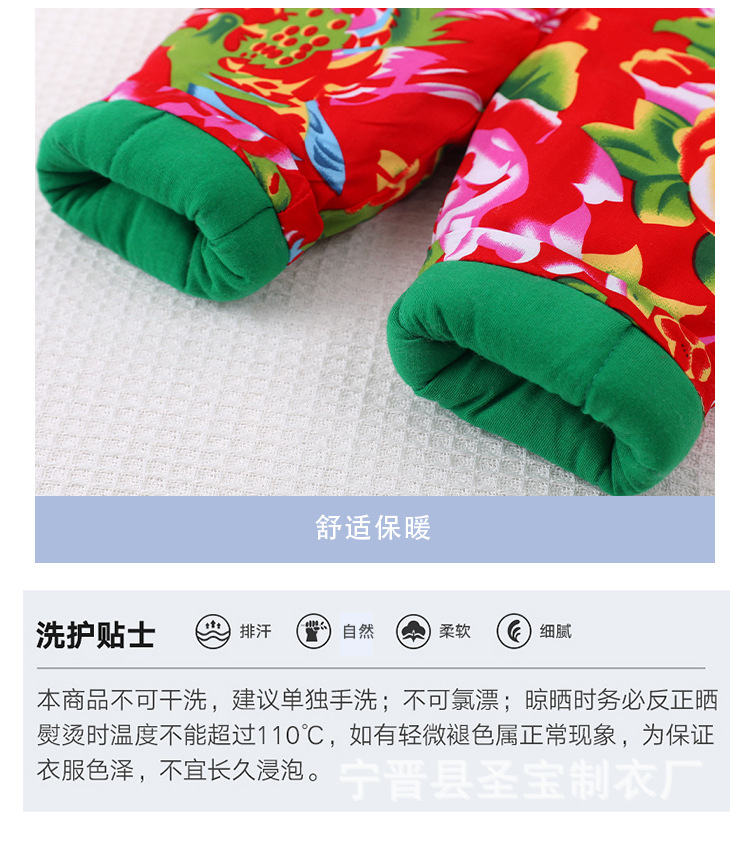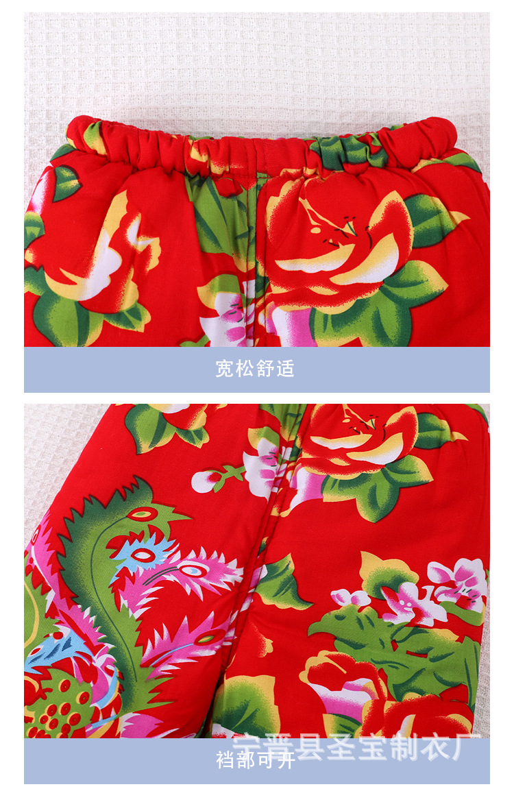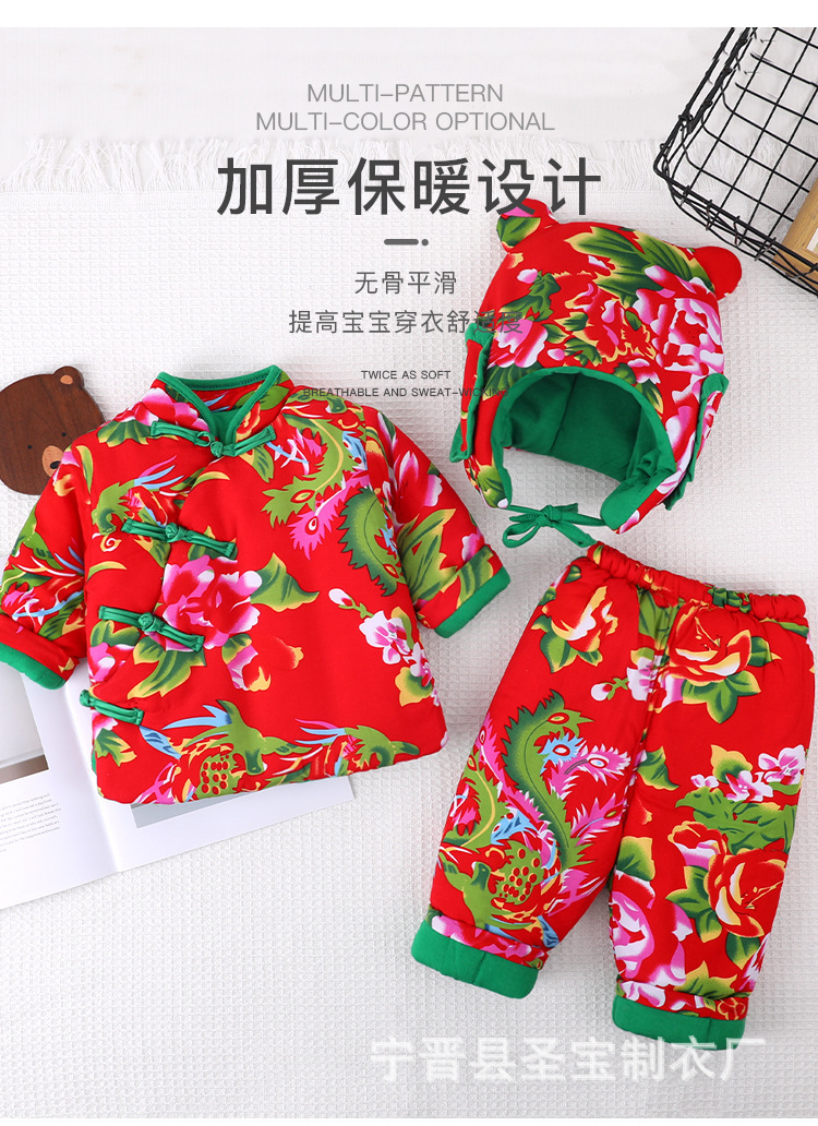 동북 큰 꽃 면화 패딩 코트 세트 베이비 코튼 패딩 코트 유아 겨울 두꺼운 코튼 패딩 코트 어린이 새해 3 피스 세트