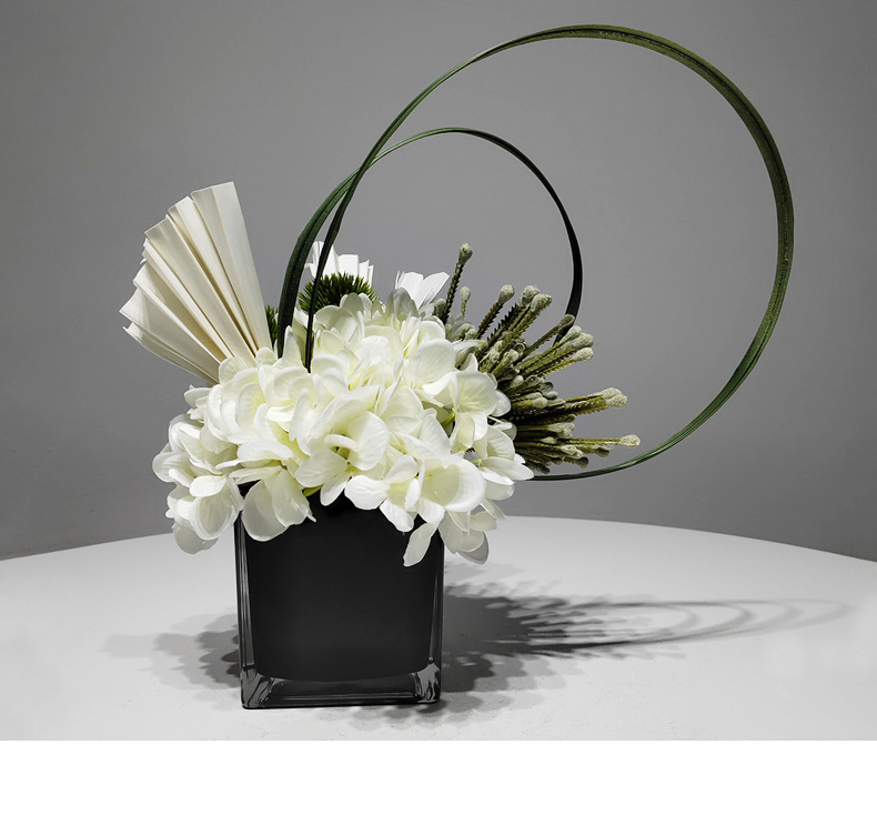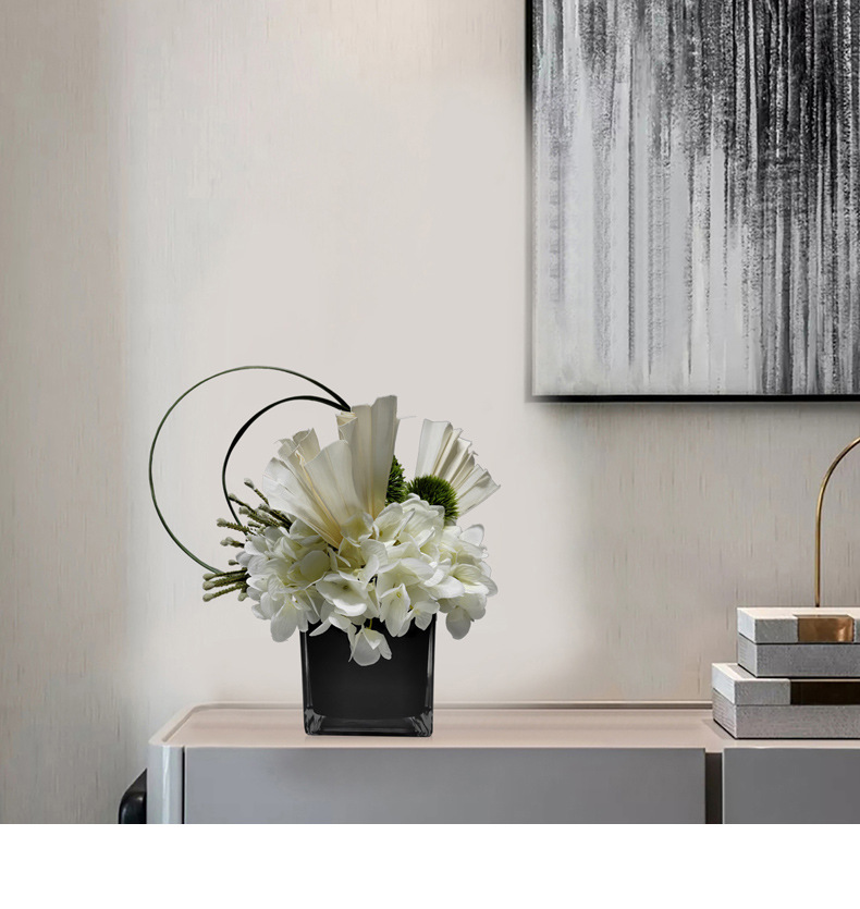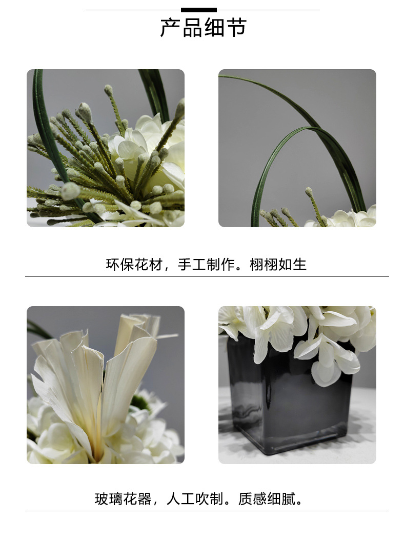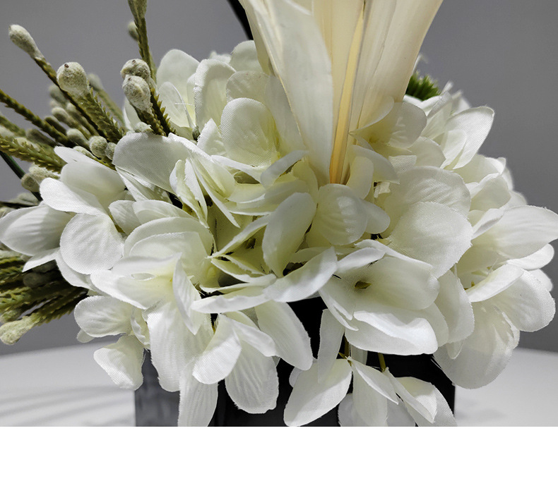 현대 가벼운 고급 흰색 인공 꽃 데스크탑 식탁 작은 꽃 분재 거실 모델 룸 장식 가짜 꽃 장식