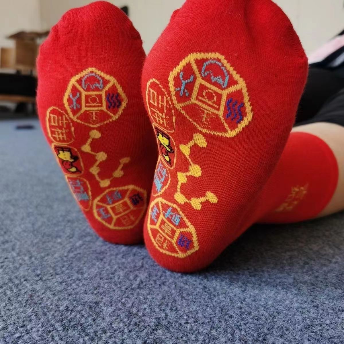 페달 7 성급 양말 지 레드 출생 년 중반 종아리 양말 자수 새해 남녀 안전 5 요소 통기성 땀 흡수성스토어 가기