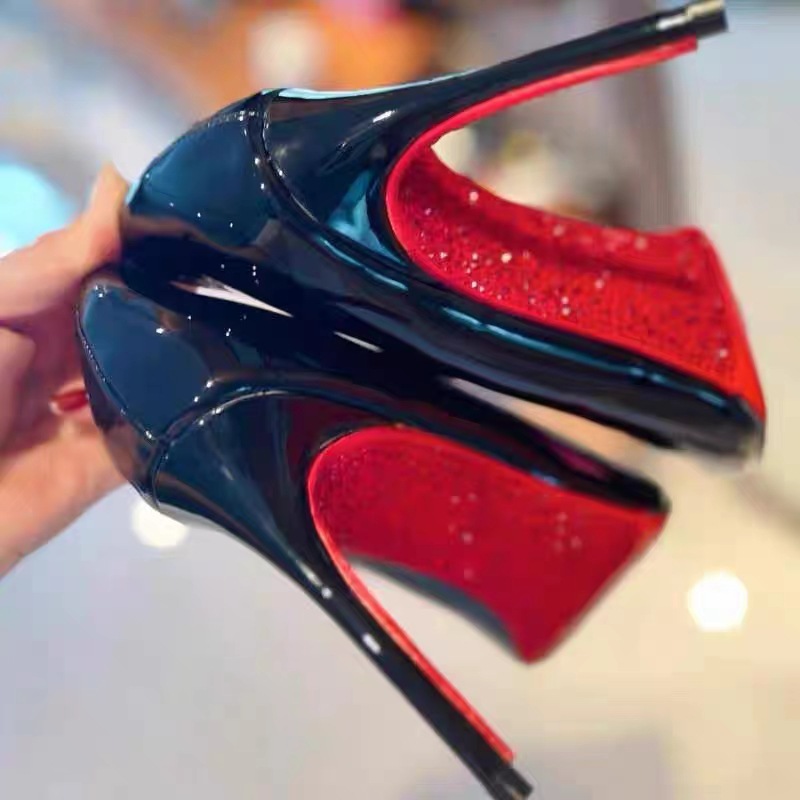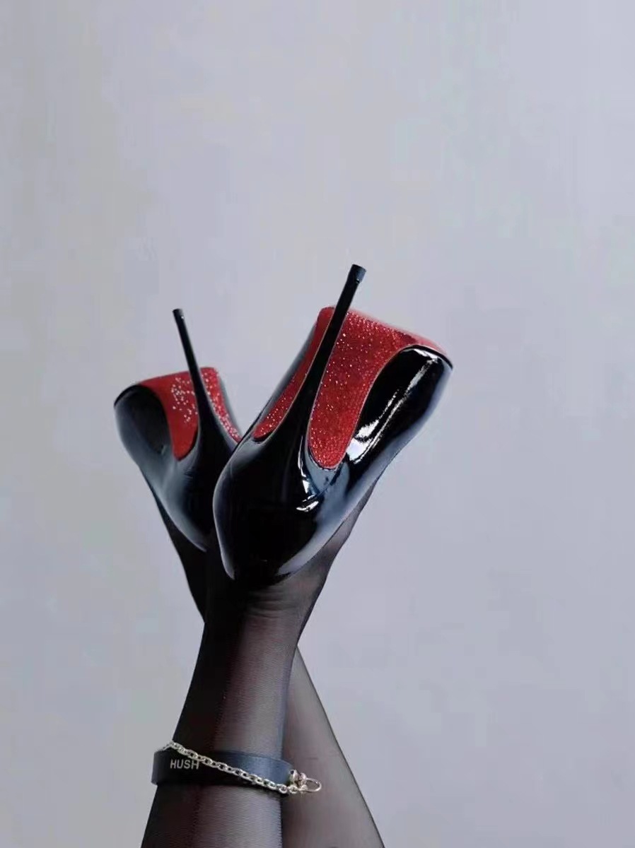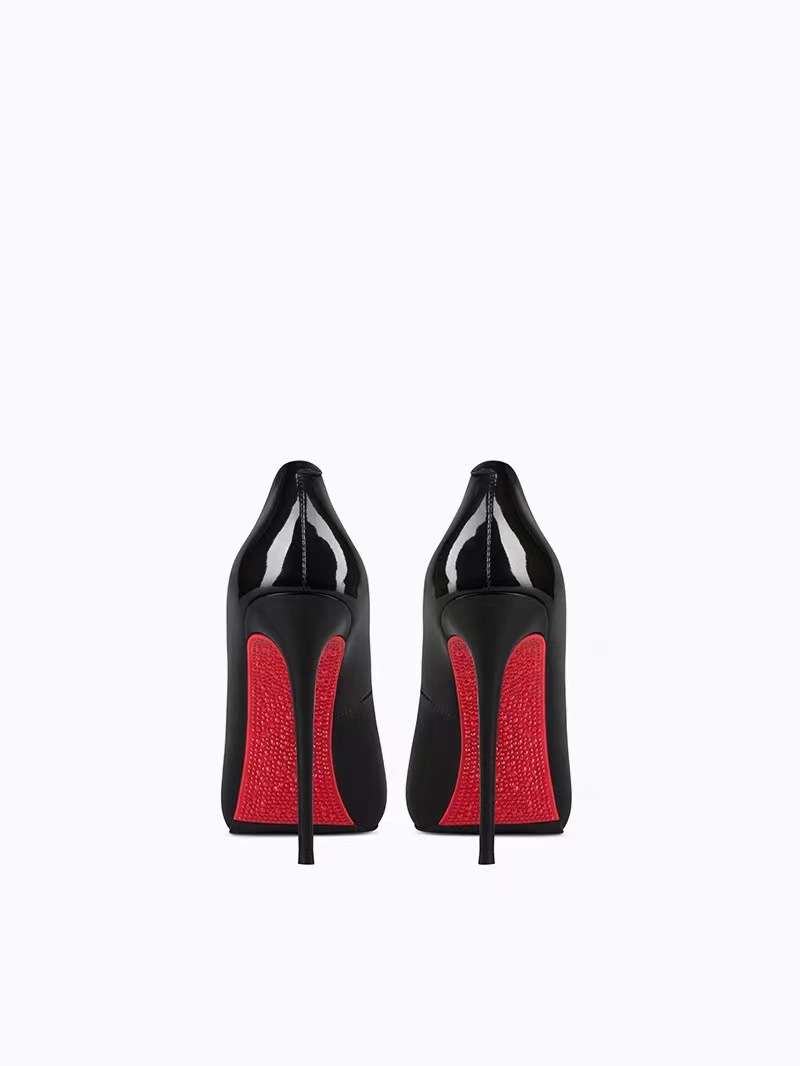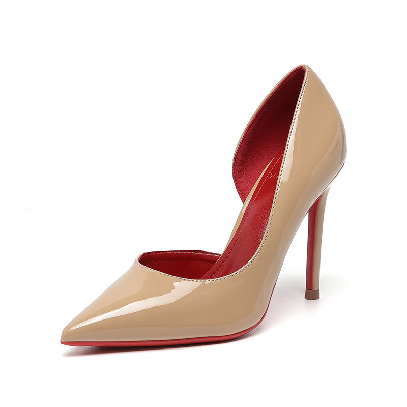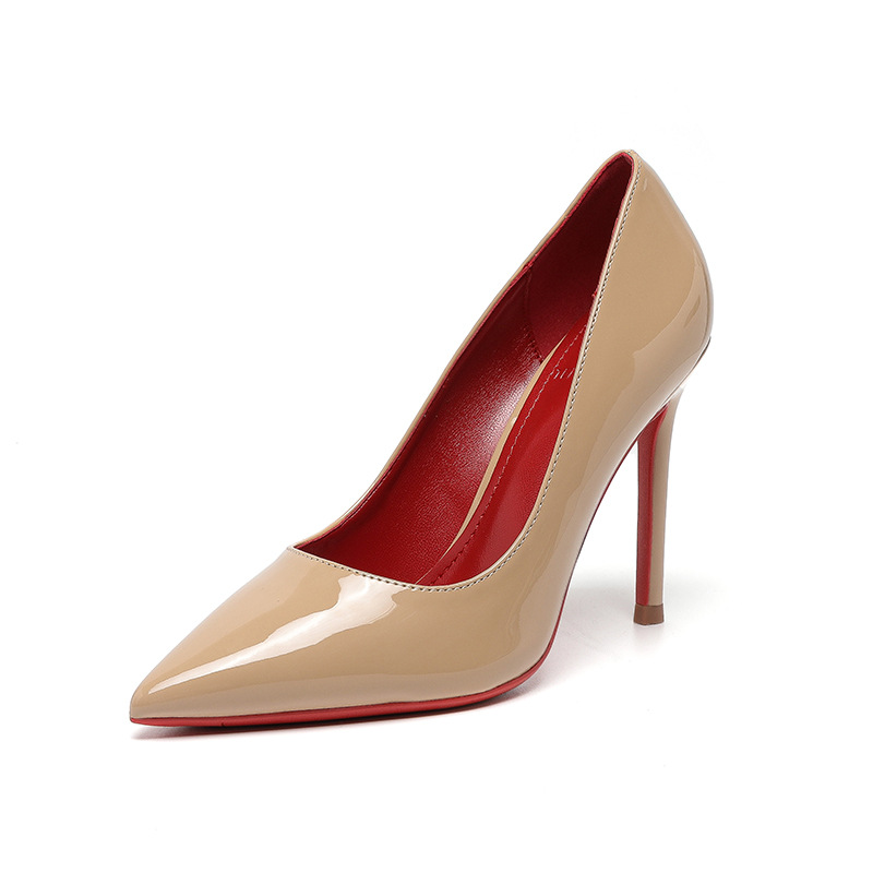 라인 석 레드 단독 하이힐 여성 스틸레토 봄과 여름 2025 새로운 스타일 아름다운 섹시한 결혼식 신발 블랙 특허 가죽 지적 발가락 신발스토어 가기