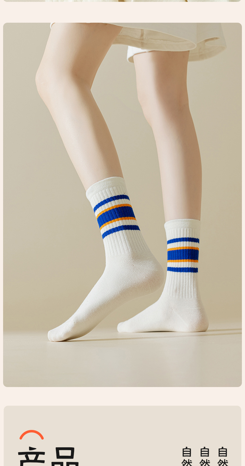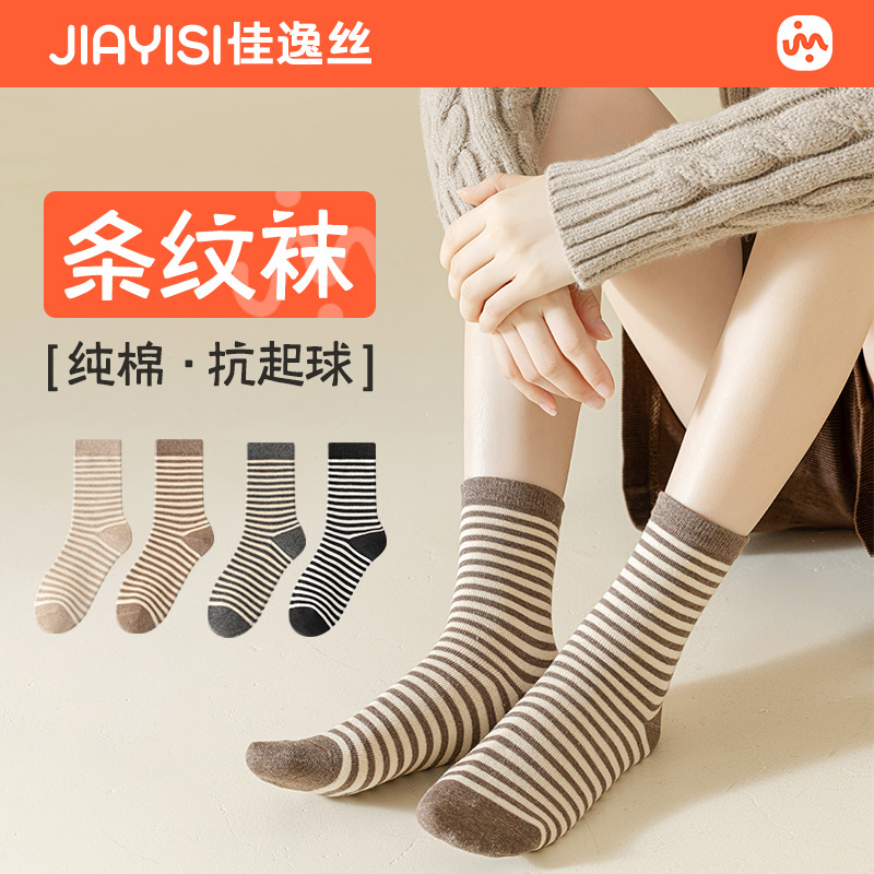 신장면 양말 여성용 종아리 양말 가을, 겨울 순수 면화 탈취제 가로 줄무늬 긴 양말 줄무늬 가을 여성 양말 도매스토어 가기