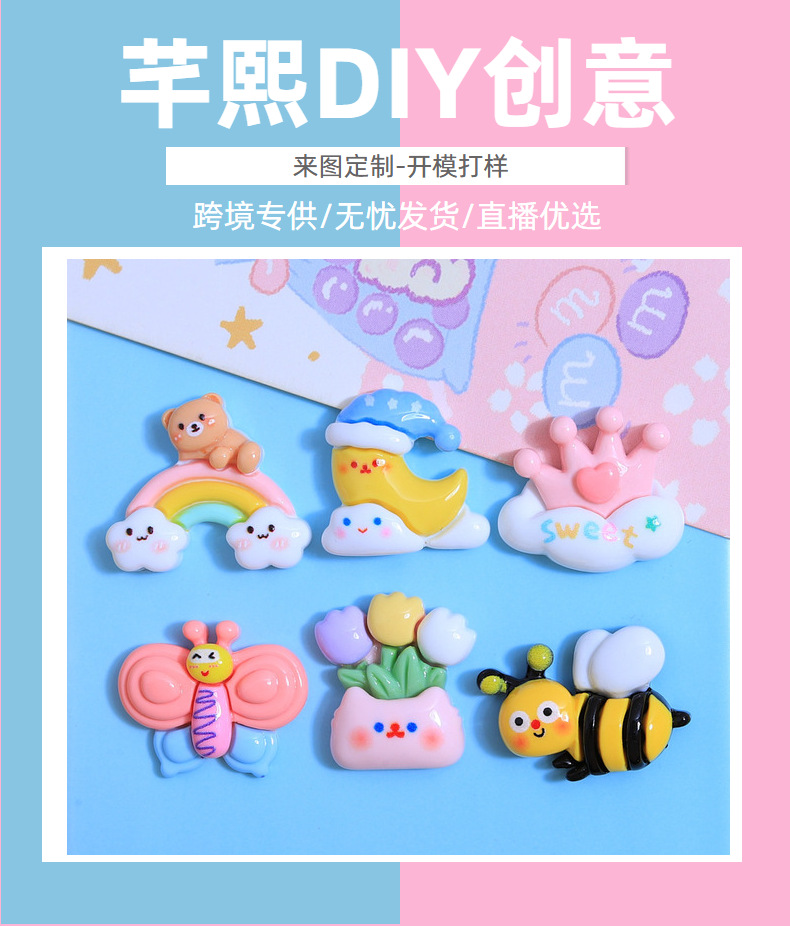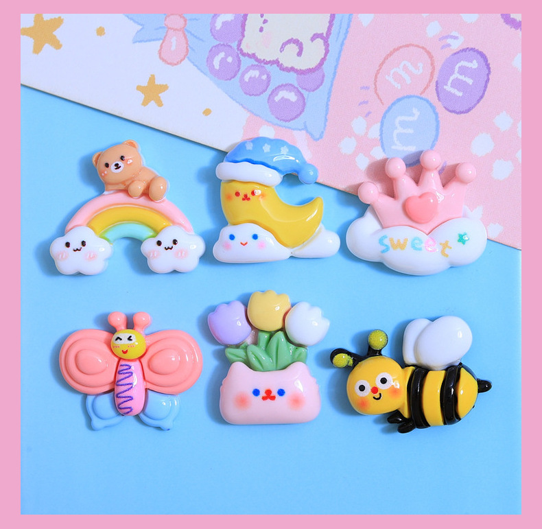 귀여운 작은 꿀벌 만화 DIY 작은 보석 크림 접착제 액세서리 수제 키 체인 머리핀 소재 수지 액세서리스토어 가기