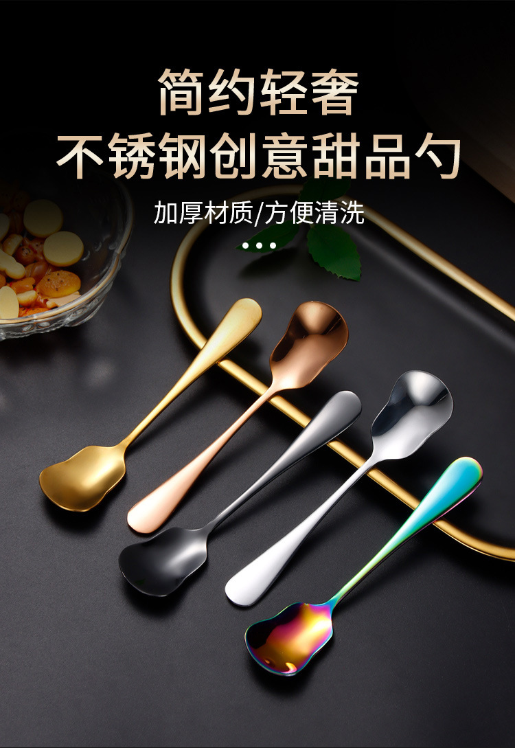 아이스크림 푸딩 스푼을 교반하는 귀여운 황금 커피 스푼 아이스크림 디저트 스푼 짧은 핸들 아이스크림 스푼스토어 가기