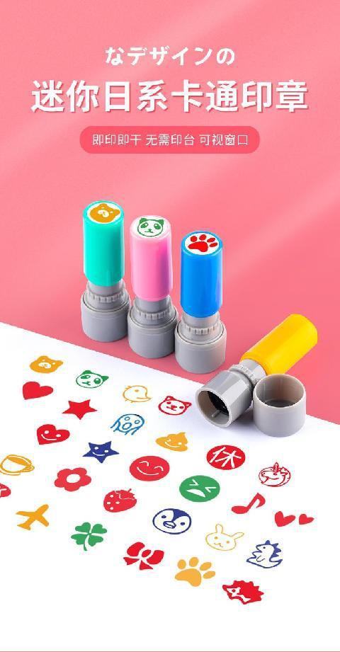 2 일 미니 씰 오피스 저널 씰 귀여운 작은 스탬프 장식 씰 만화 스타 웃는 붉은 꽃스토어 가기