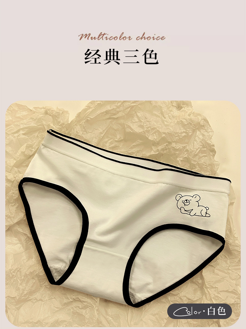 여성면 속옷 한국식 섹시한 소녀 학생 만화 곰 코튼 가랑이 중간 허리 통기성 삼각형 반바지 머리
