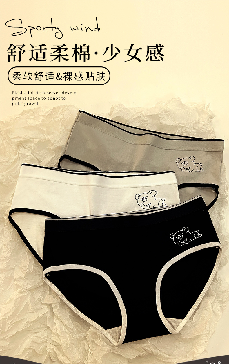 여성면 속옷 한국식 섹시한 소녀 학생 만화 곰 코튼 가랑이 중간 허리 통기성 삼각형 반바지 머리스토어 가기