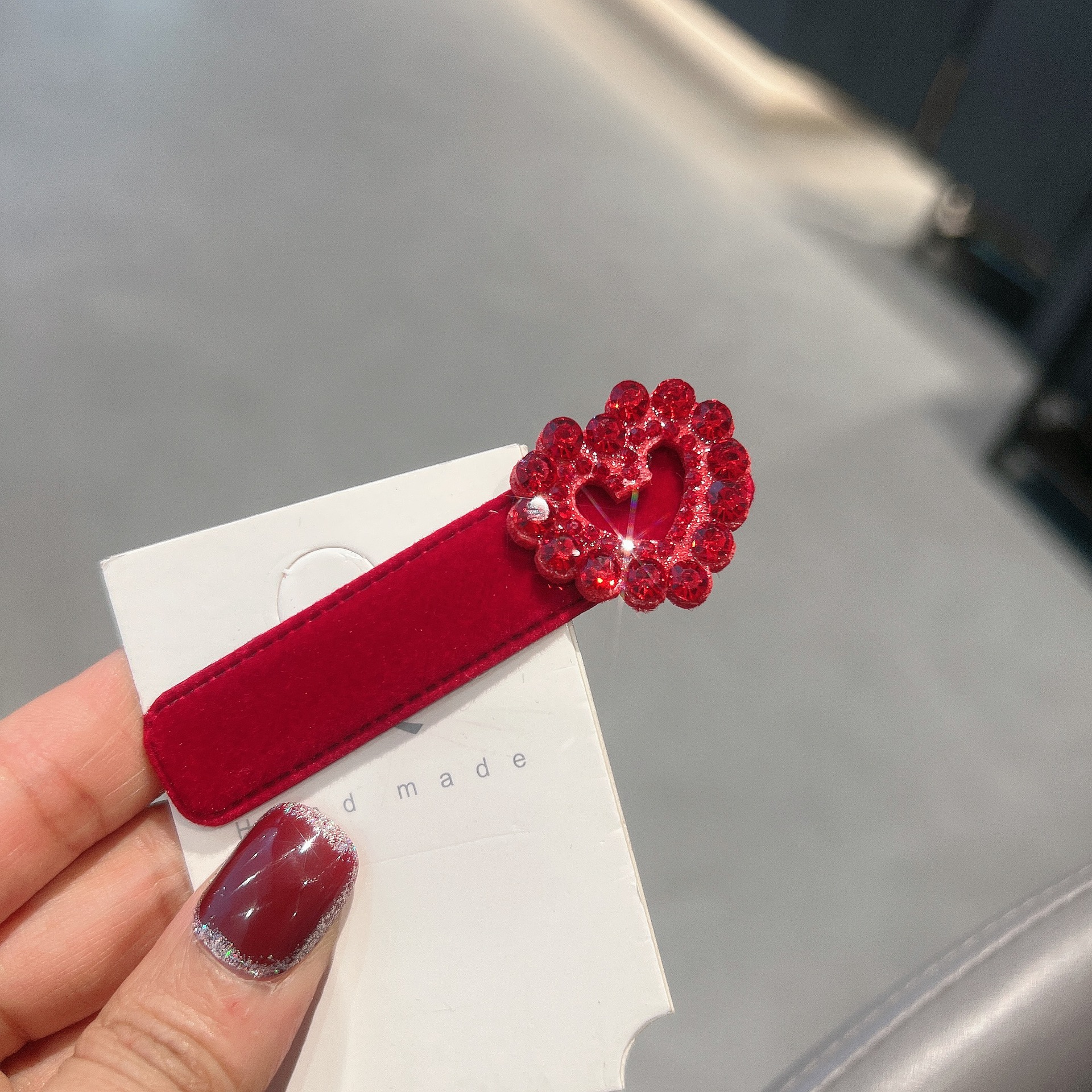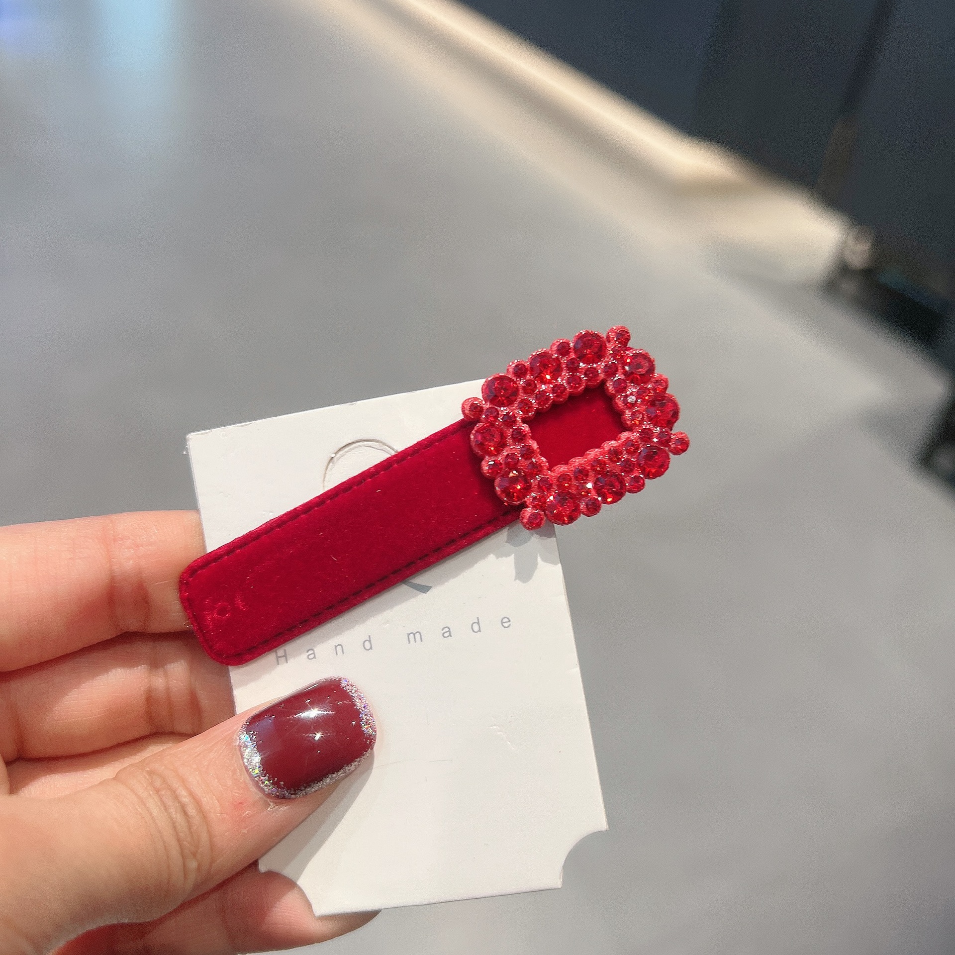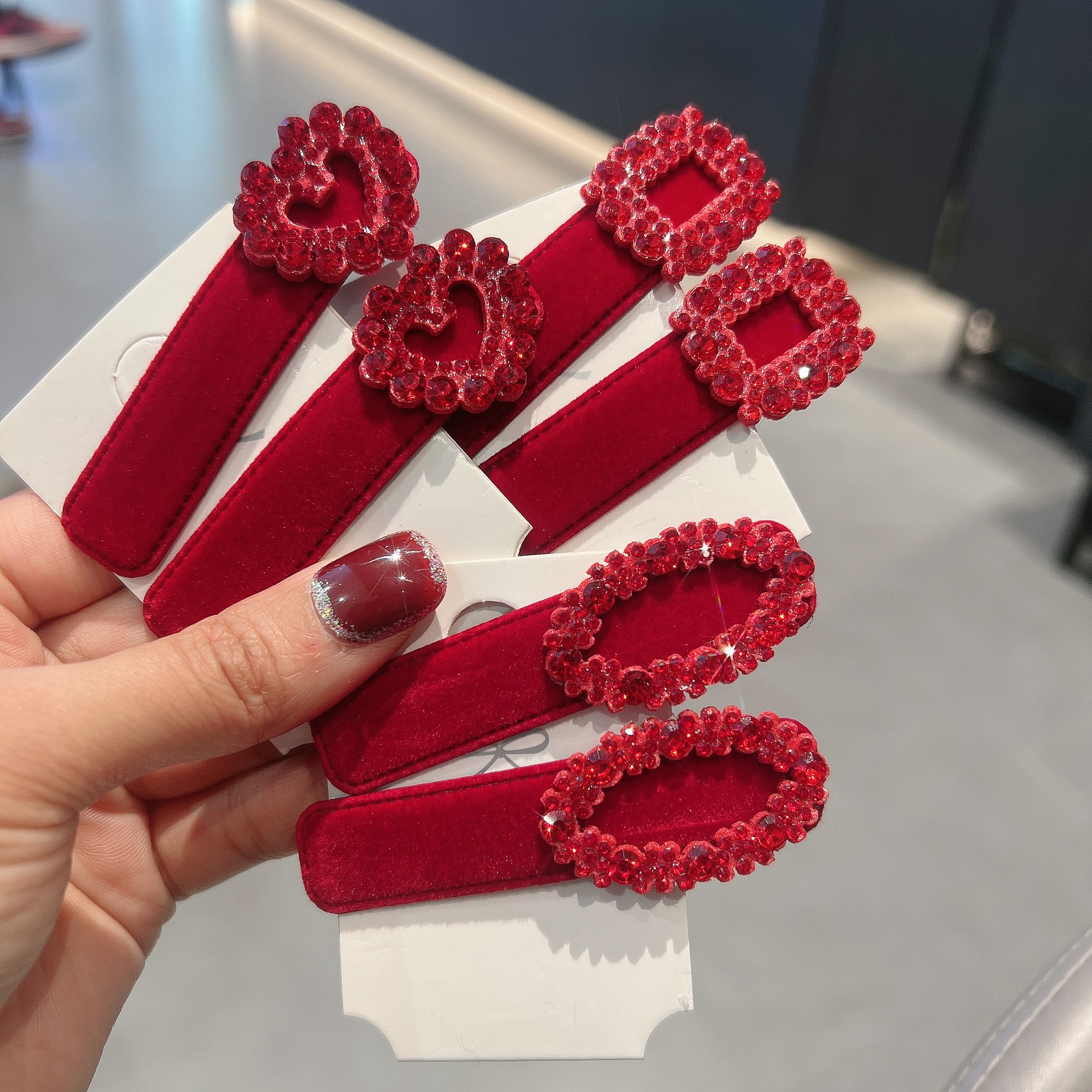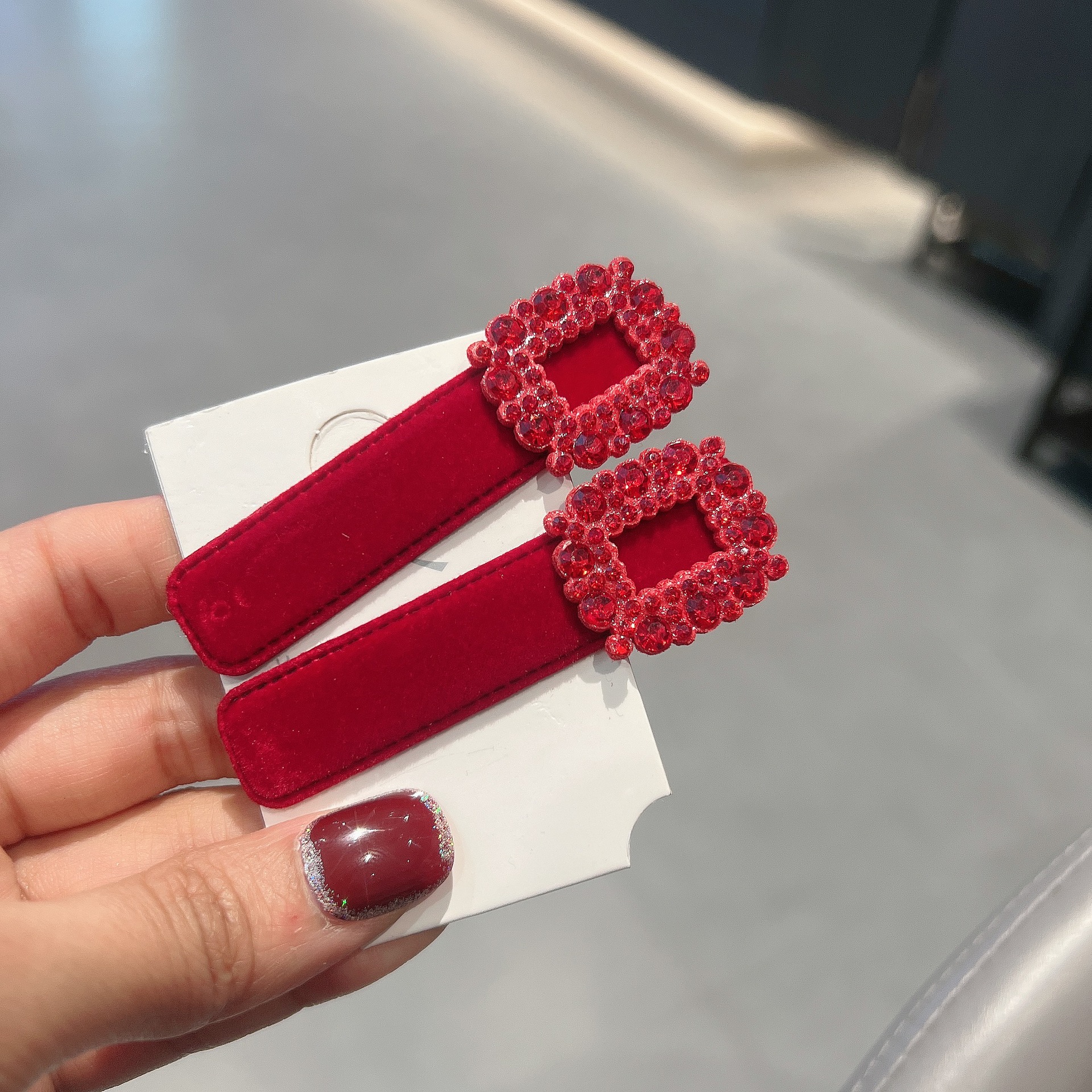 가을과 겨울 새로운 프랑스 스타일 bb 클립 작은 샤넬 스타일 라인스톤 레드 뱅이 클립 머리 간단한 클립 헤어핀 여성스토어 가기