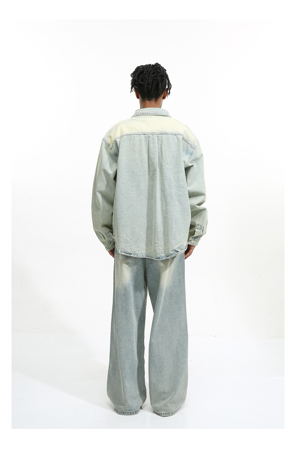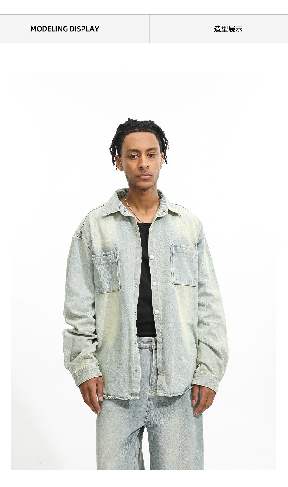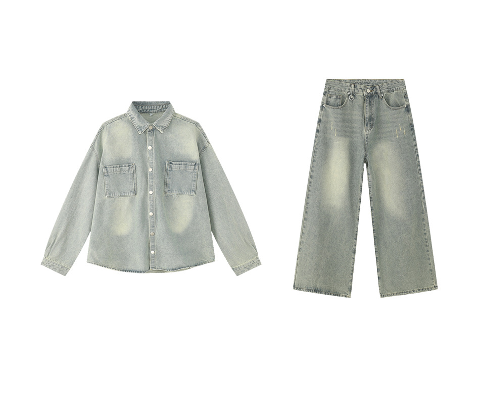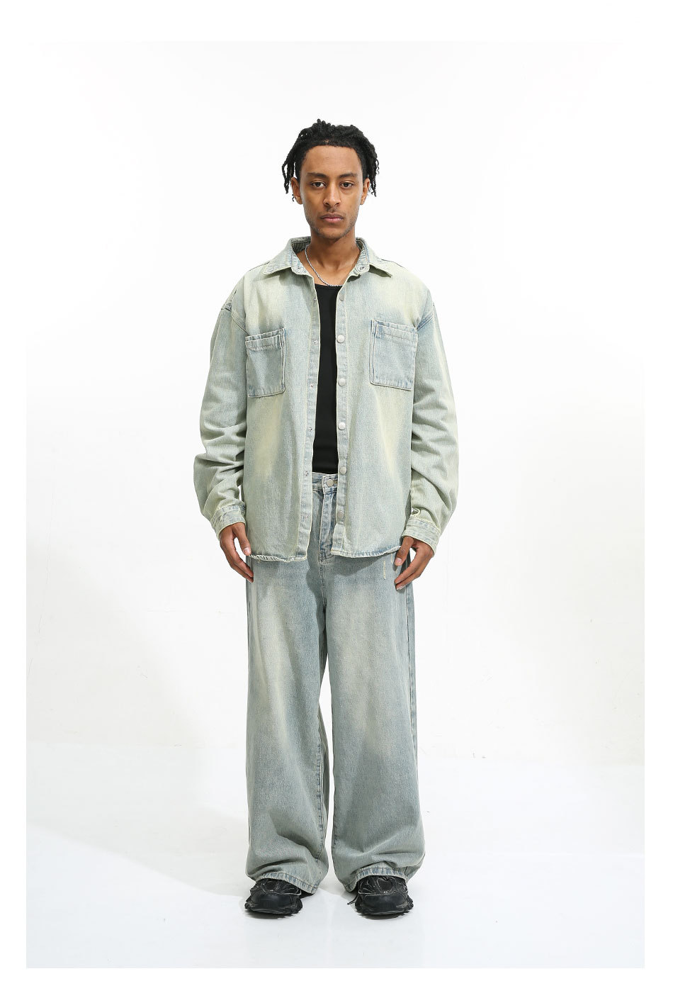 EF 카우보이 | 남성과 여성을 위한 새로운 루즈한 워싱 화이트 라이트 블루 데님 셔츠 재킷 바지 캐주얼 정장스토어 가기
