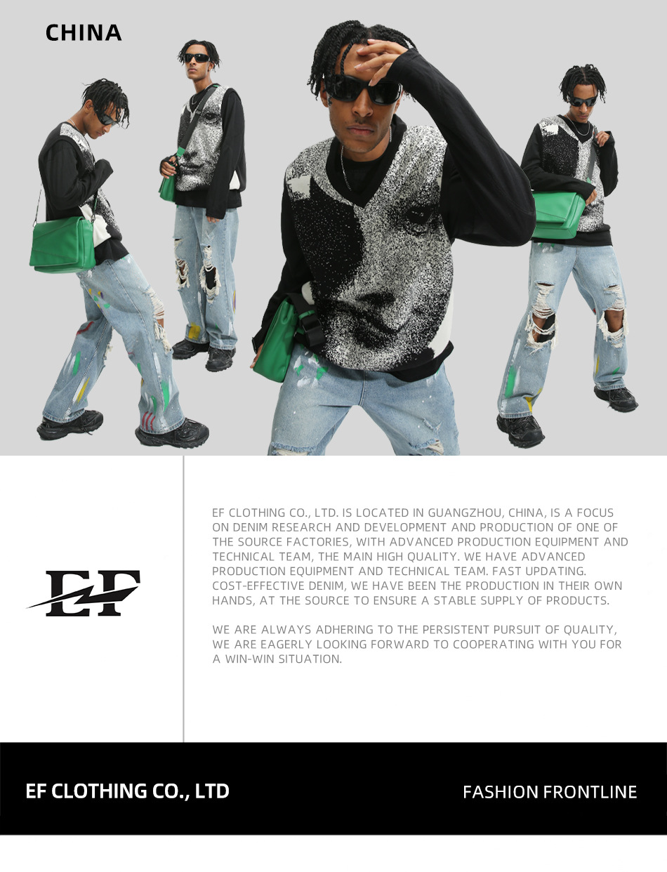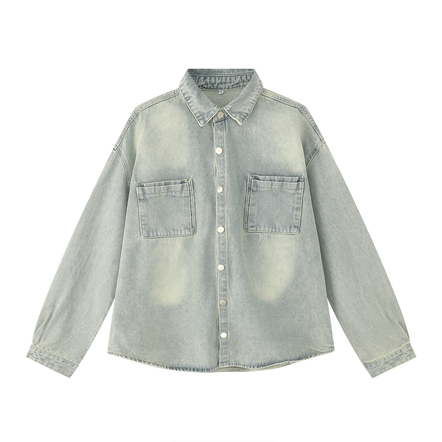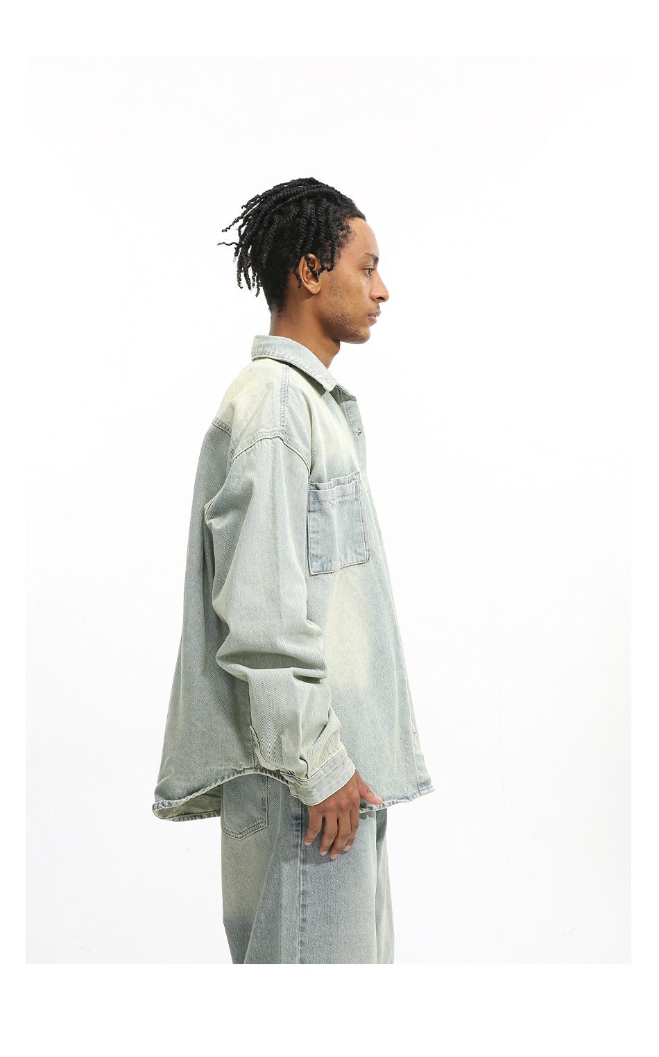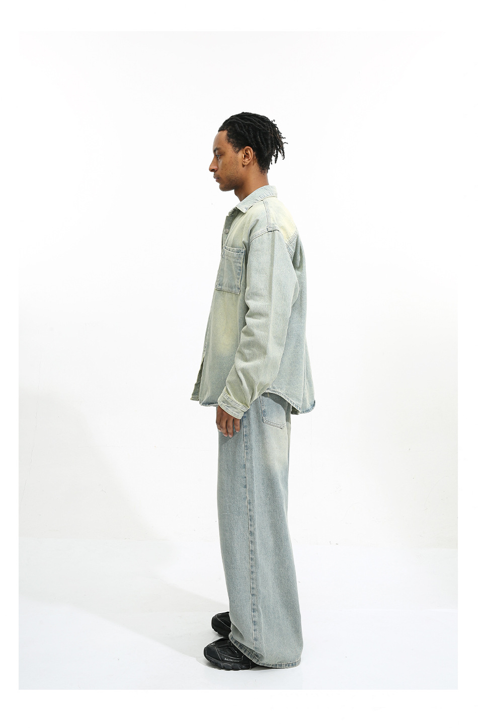 EF 카우보이 | 남성과 여성을 위한 새로운 루즈한 워싱 화이트 라이트 블루 데님 셔츠 재킷 바지 캐주얼 정장스토어 가기