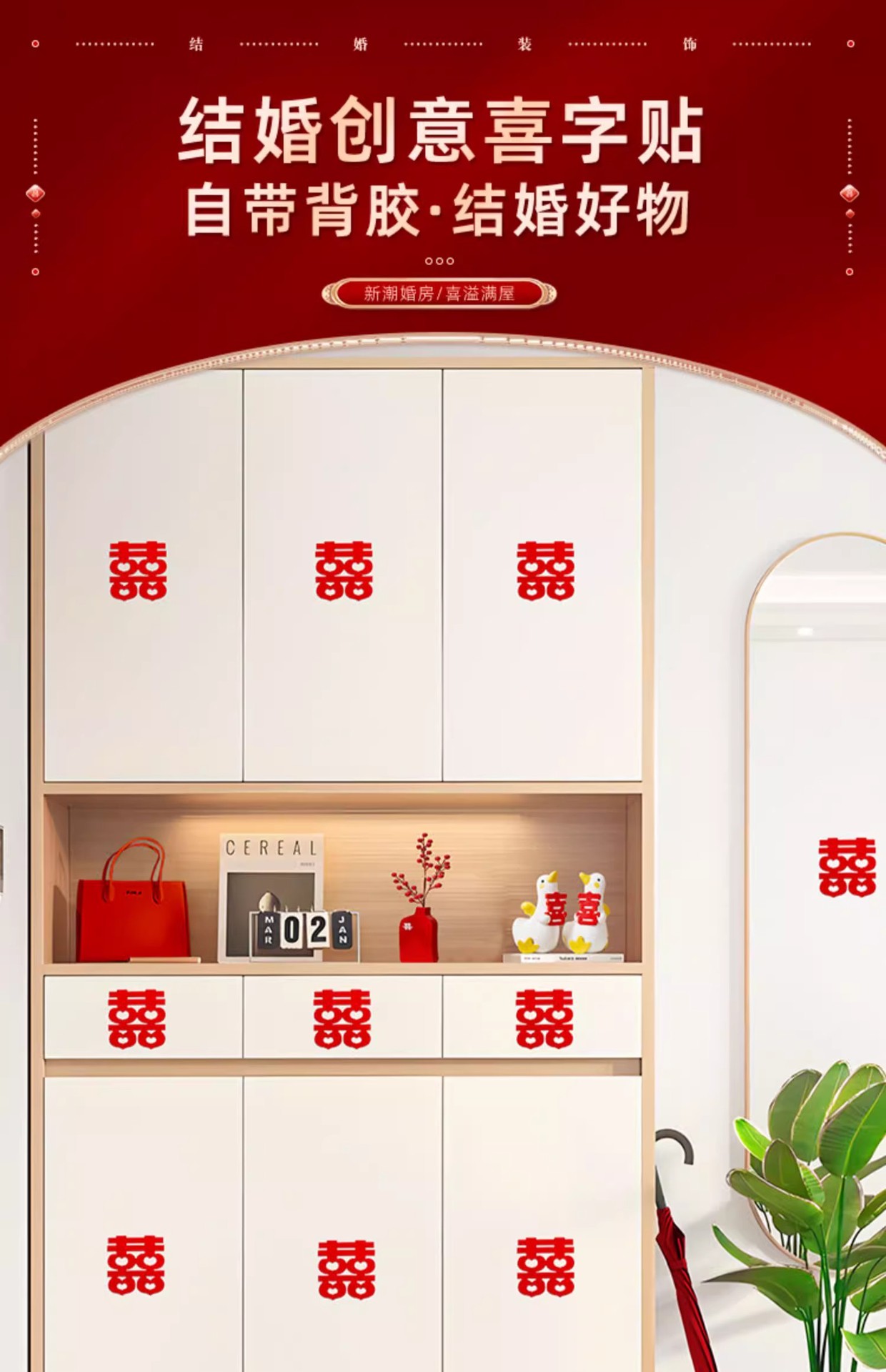 결혼식 자기 접착 자기 접착 계단 캐비닛 작은 Xi 캐릭터 스티커 창조적 인 결혼식 지참금 캐비닛 문 축제 Xi 캐릭터 스티커
