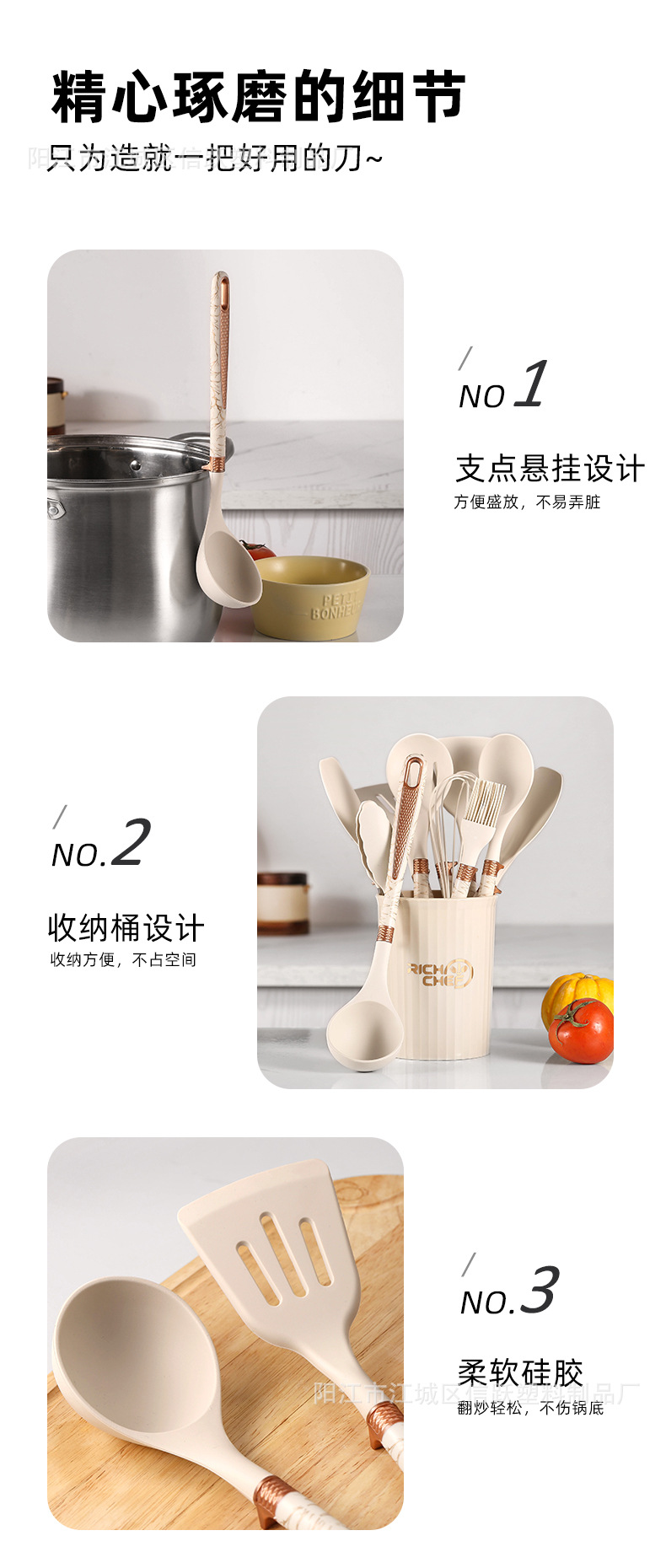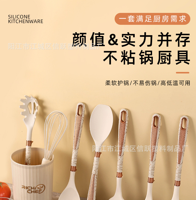 아마존 새로운 실리콘 주방 12 피스 주방 요리 도구 세트 붙지 않는 주걱 수프 숟가락 소쿠리 스푼