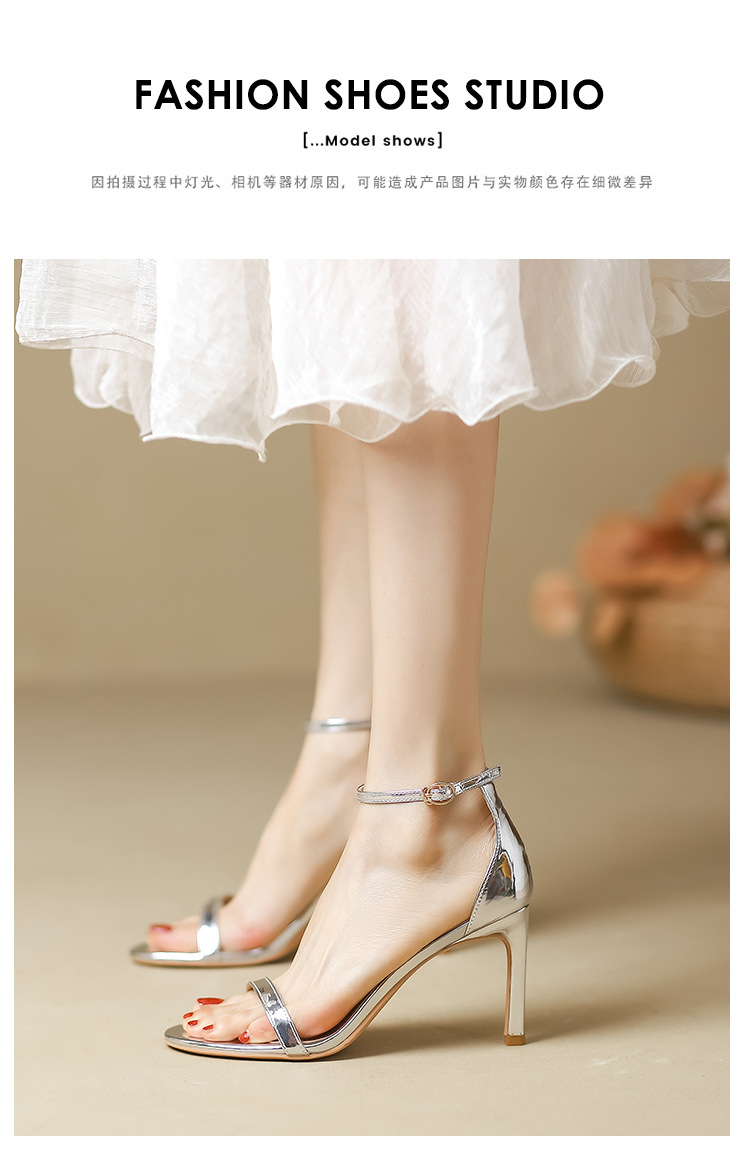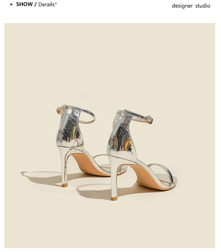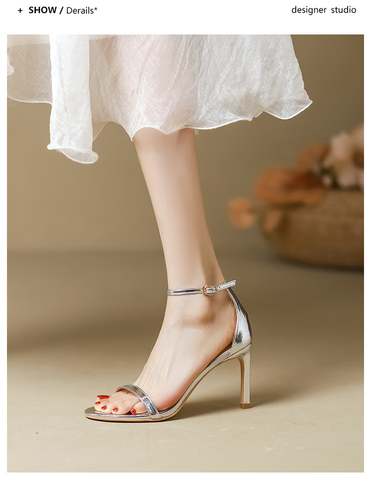 여성을위한 원 스트랩 샌들 봄, 여름 새로운 실버 하이힐 스틸레토 다목적 섹시한 누드 여성 신발 요정 스타일스토어 가기