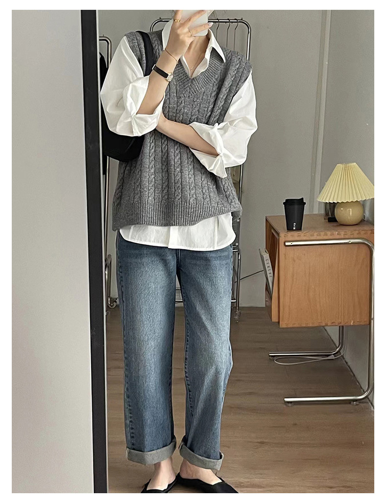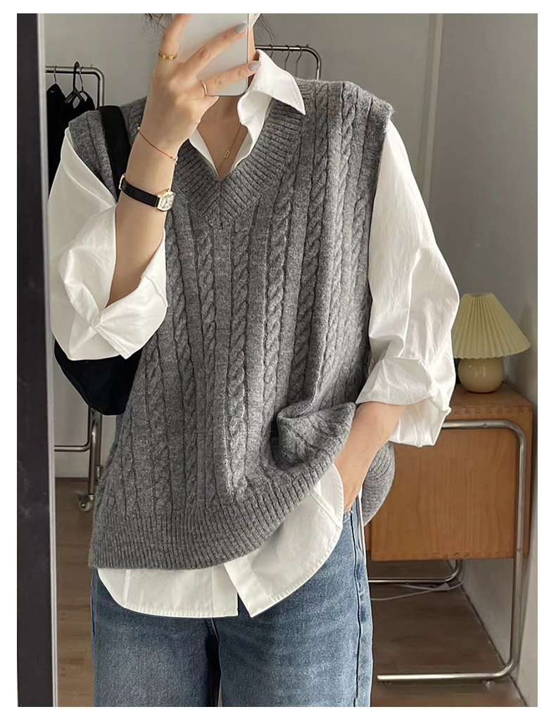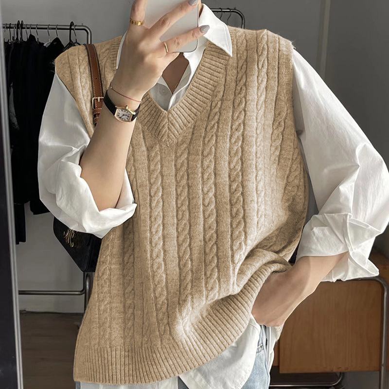 트위스트 스웨터 조끼 여성의 가을과 겨울에 작은 양복 조끼 새 겉옷 내복 착용 복고풍 느슨한 니트 풀오버 조끼스토어 가기