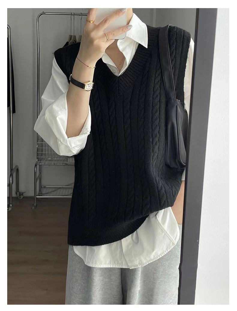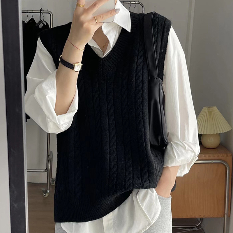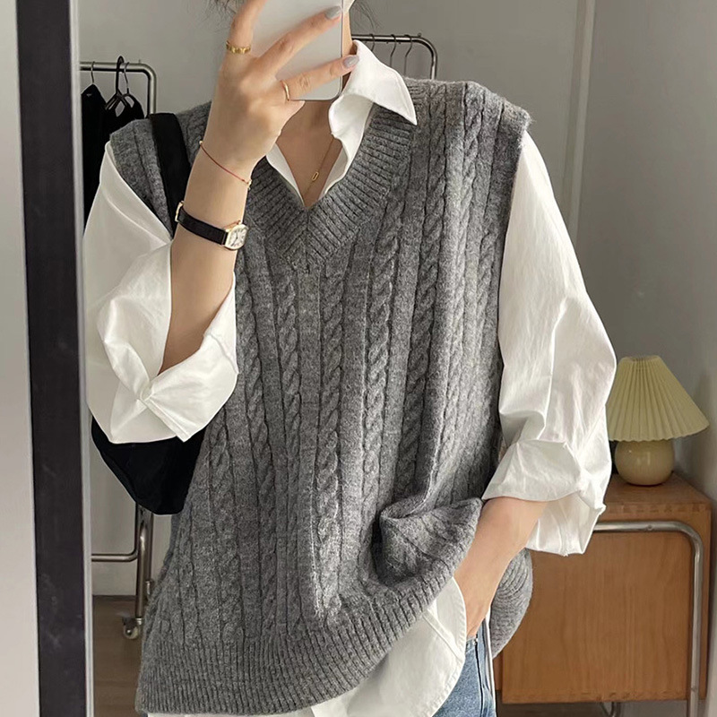 트위스트 스웨터 조끼 여성의 가을과 겨울에 작은 양복 조끼 새 겉옷 내복 착용 복고풍 느슨한 니트 풀오버 조끼