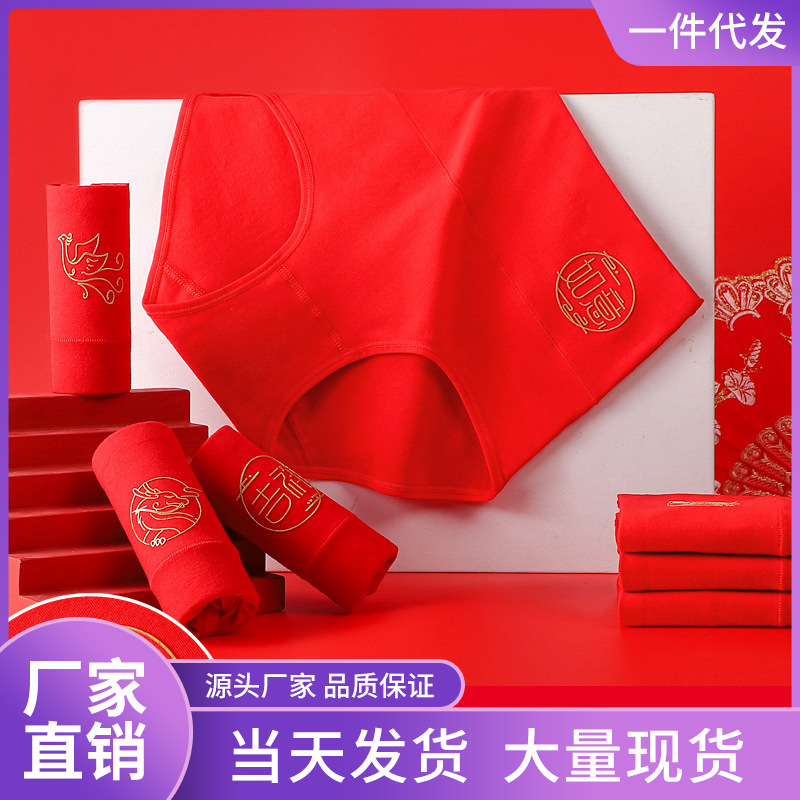 새로운 하이 웨이스트 여성의 레드 드래곤 년 홍윤 속옷 에폭시 도금 누드 느낌 편안한 소녀의 인생 속옷