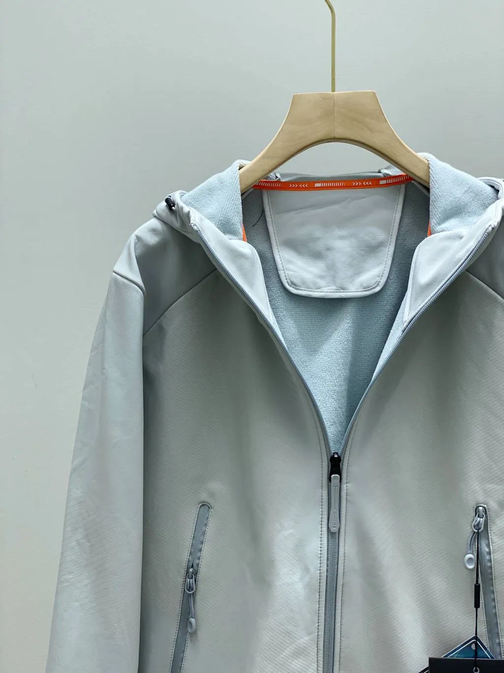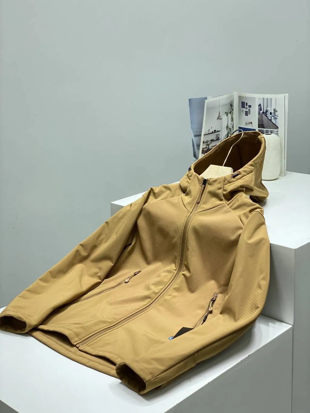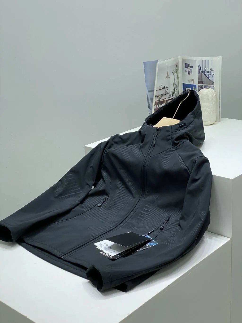야외 소프트 쉘 시리즈! 방풍 및 방수! 가을과 겨울 남성 복합 기모 멀티 포켓 후드 재킷