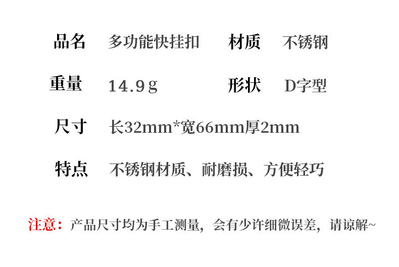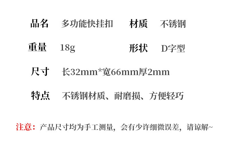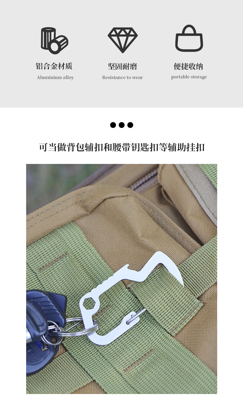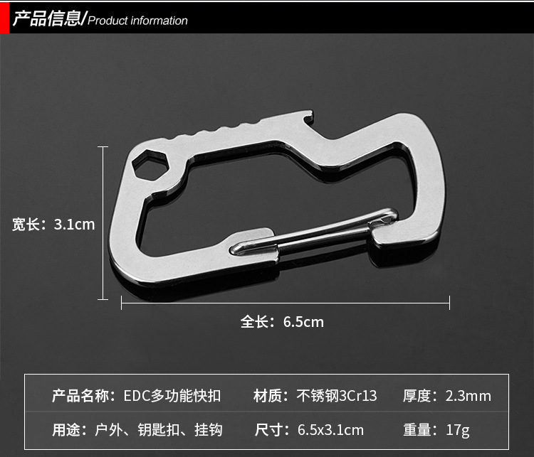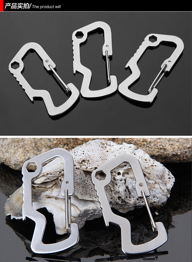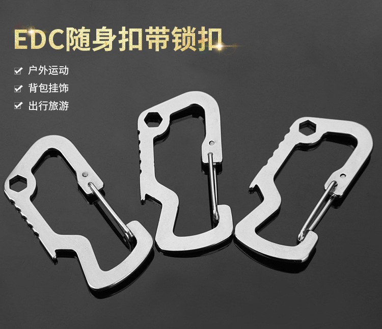 스몰 스쿠알라 EDC 메탈 버클 스테인리스 등산용 클립 병따개 스프링 훅 키홀더 아웃도어