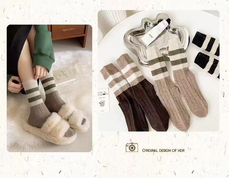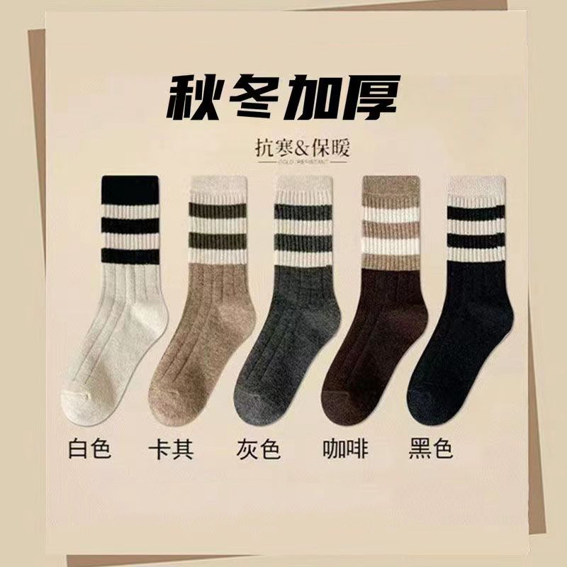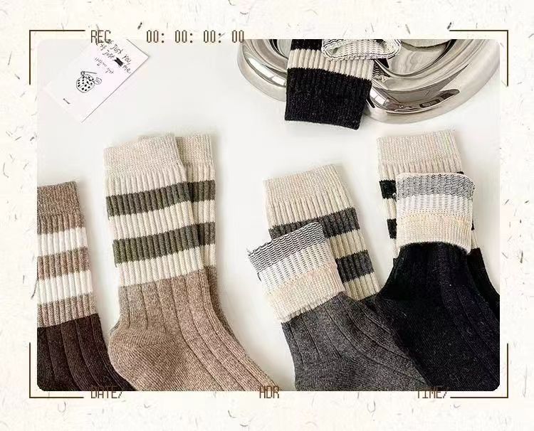 가을과 겨울 여성 양말 따뜻한 빈티지 양말 중반 송아지 스트라이프 인 조수 양말 상어 바지 길이 양말면 통기성 대학 스타일스토어 가기