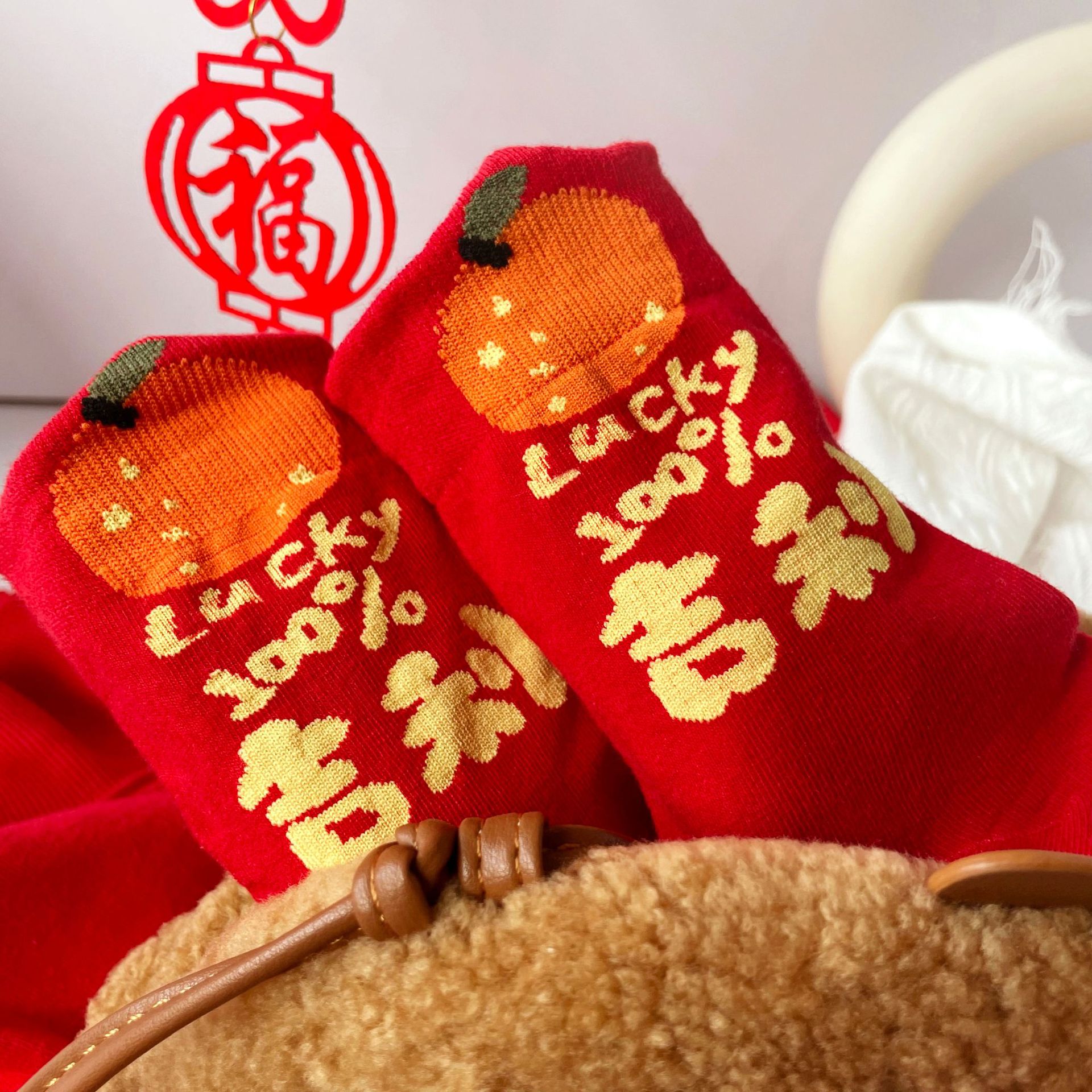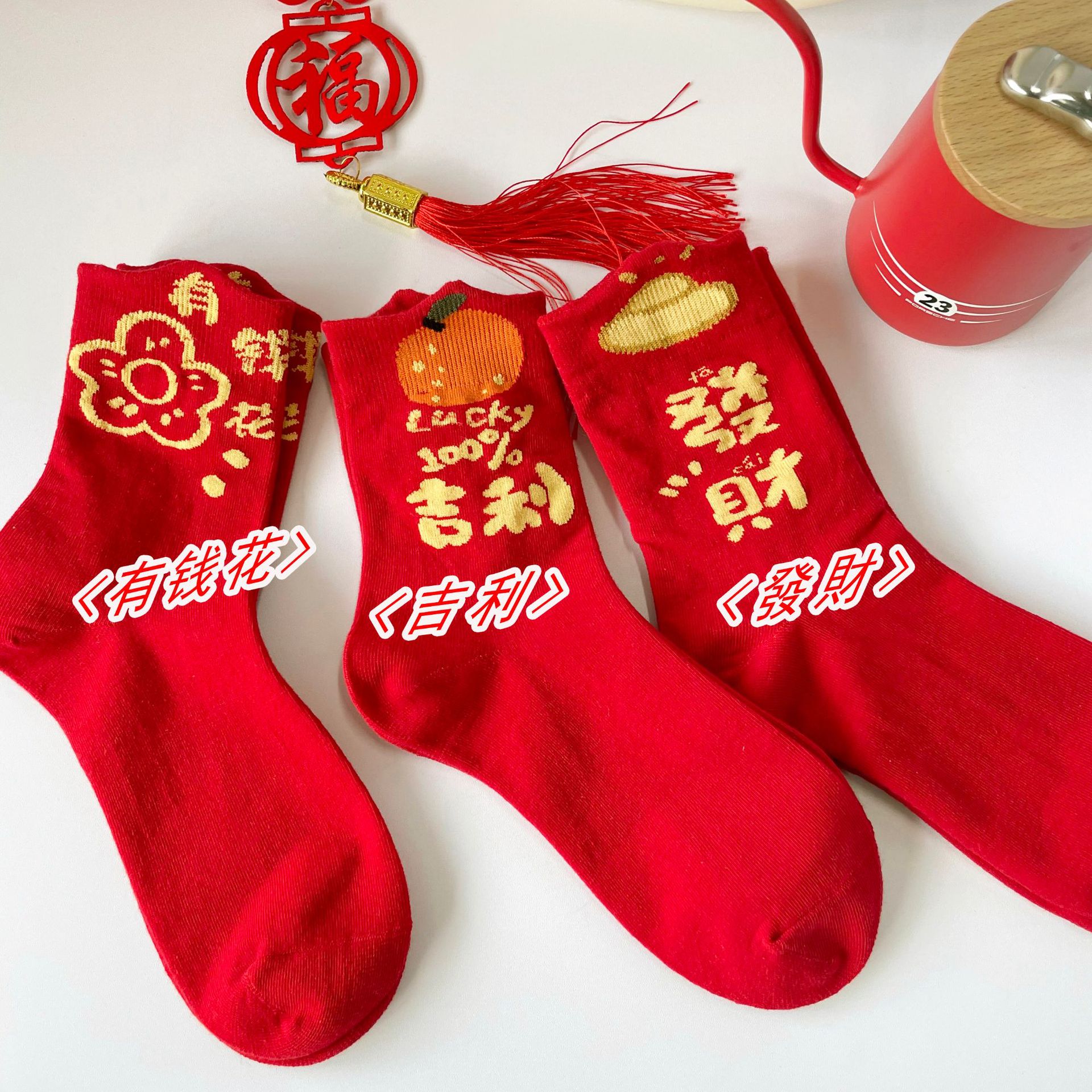 Ziyang 새해 빨간 양말 중반 송아지 여성 양말 드래곤 년 양말 웨딩 양말 축제 양말 출생 년 양말 Liao yuan 면화 양말