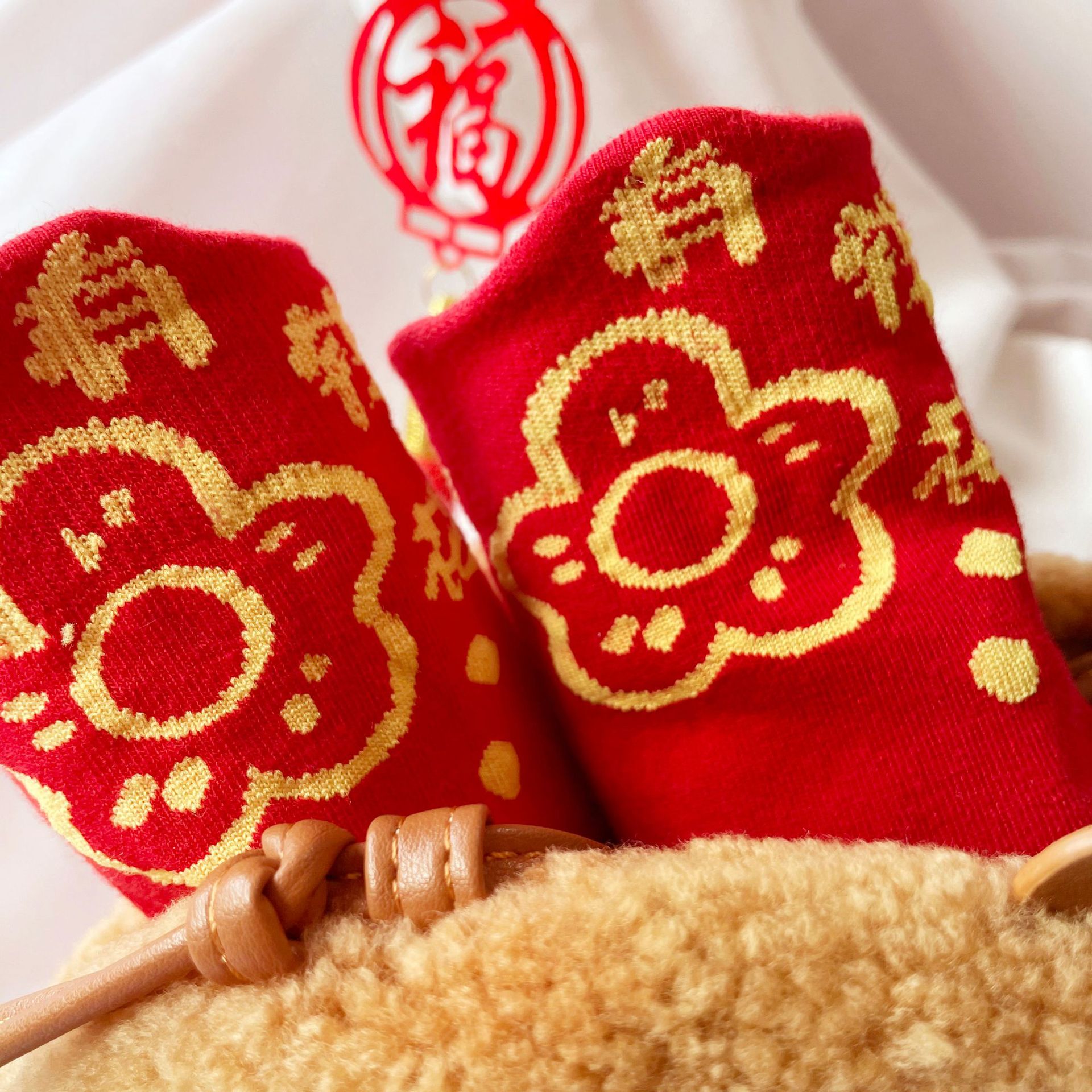 Ziyang 새해 빨간 양말 중반 송아지 여성 양말 드래곤 년 양말 웨딩 양말 축제 양말 출생 년 양말 Liao yuan 면화 양말스토어 가기