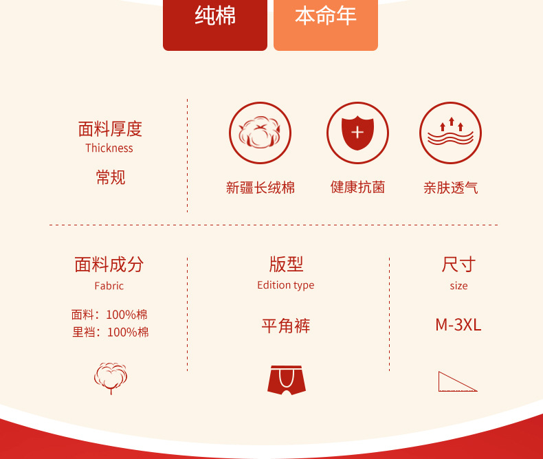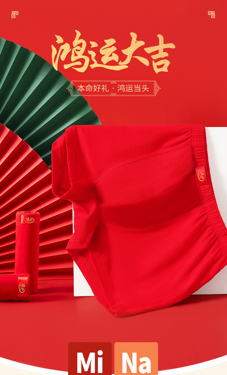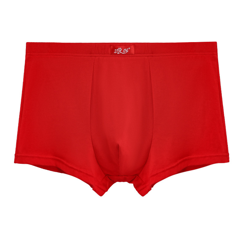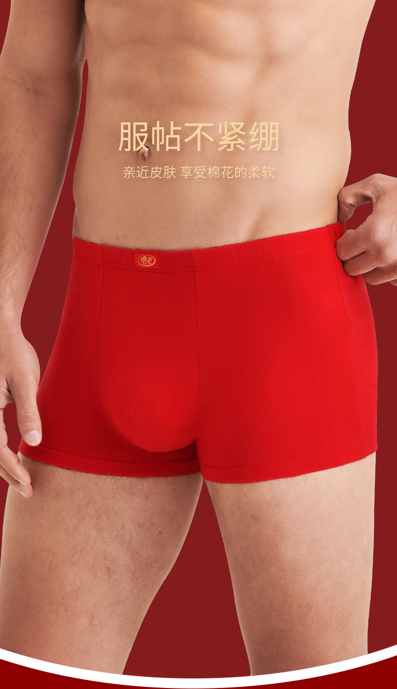 Langsha 출생 년 빨간 속옷 남성용 면 드래곤 년 큰 빨간 권투 선수 결혼식 통기성 소년 반바지스토어 가기