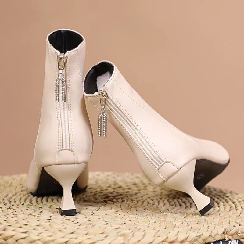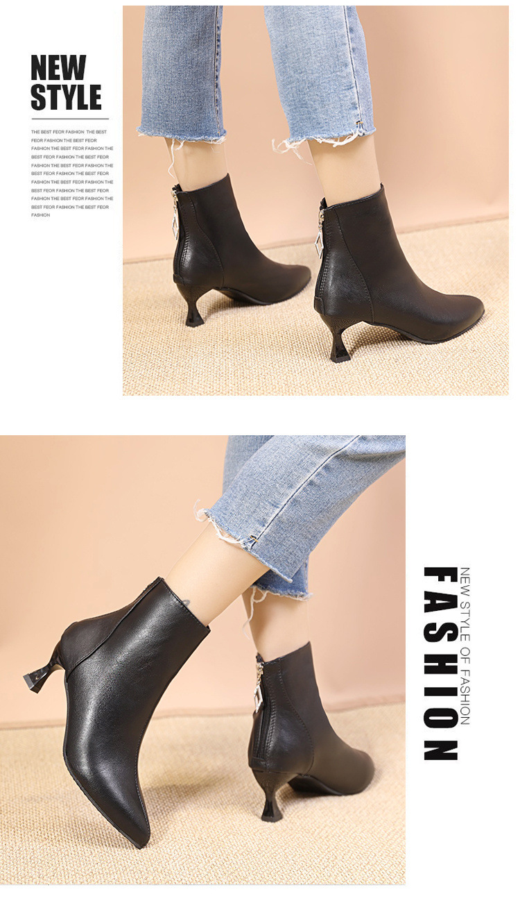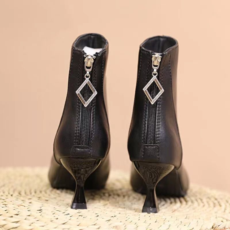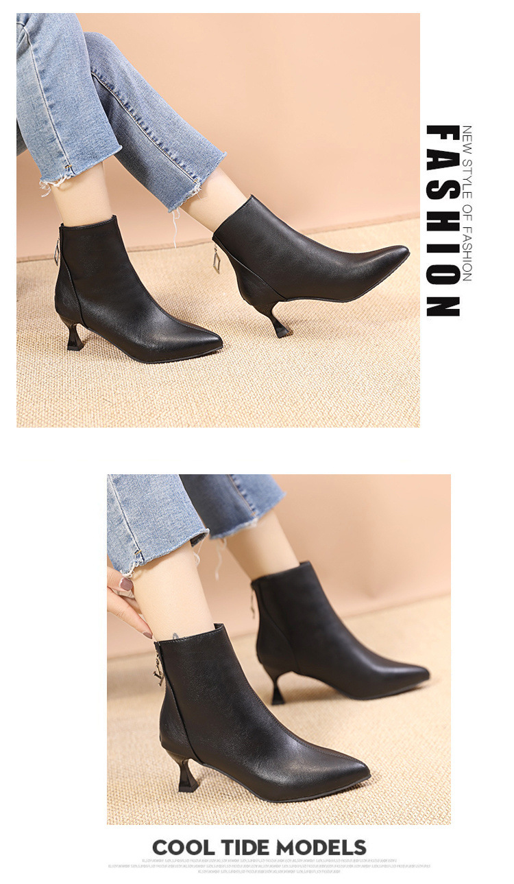 부드러운 가죽 짧은 부츠 여성 얇은 부츠 2023 가을 및 겨울 새로운 한국 뾰족한 기모 하이힐 얇은 뒤꿈치 다목적 마틴 부츠스토어 가기