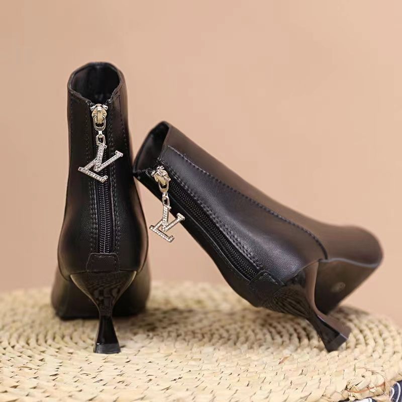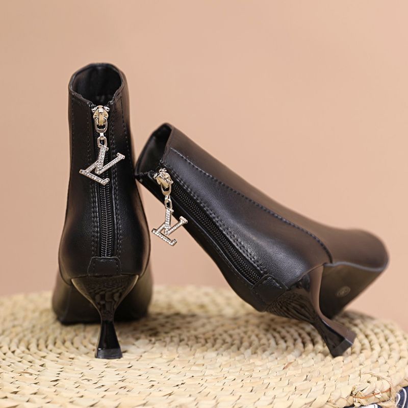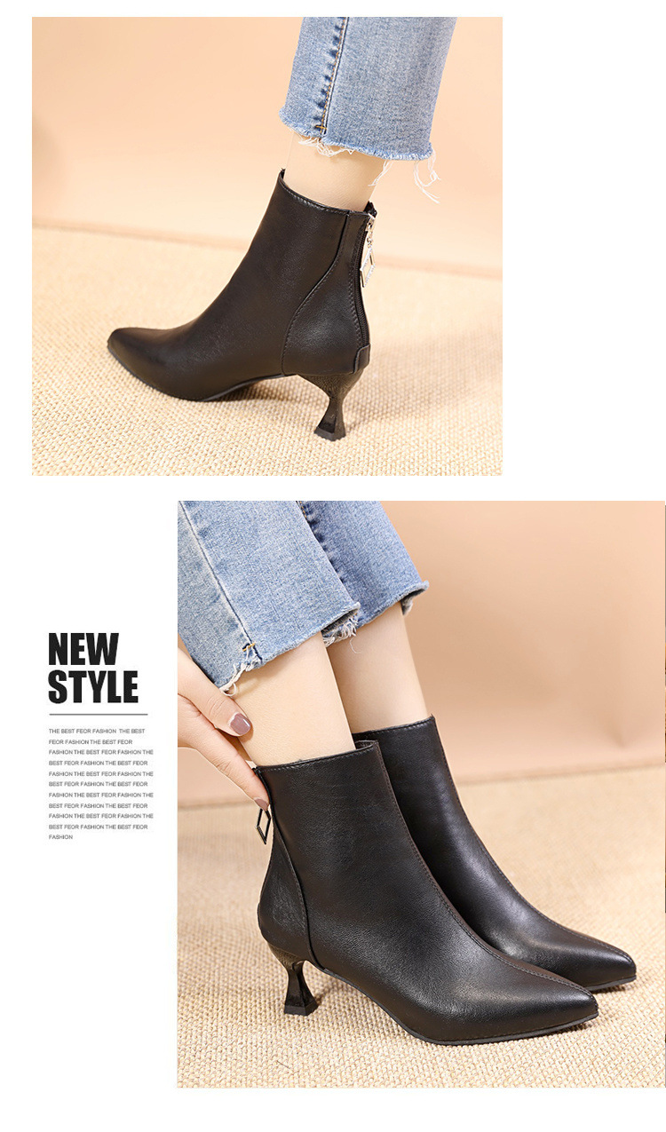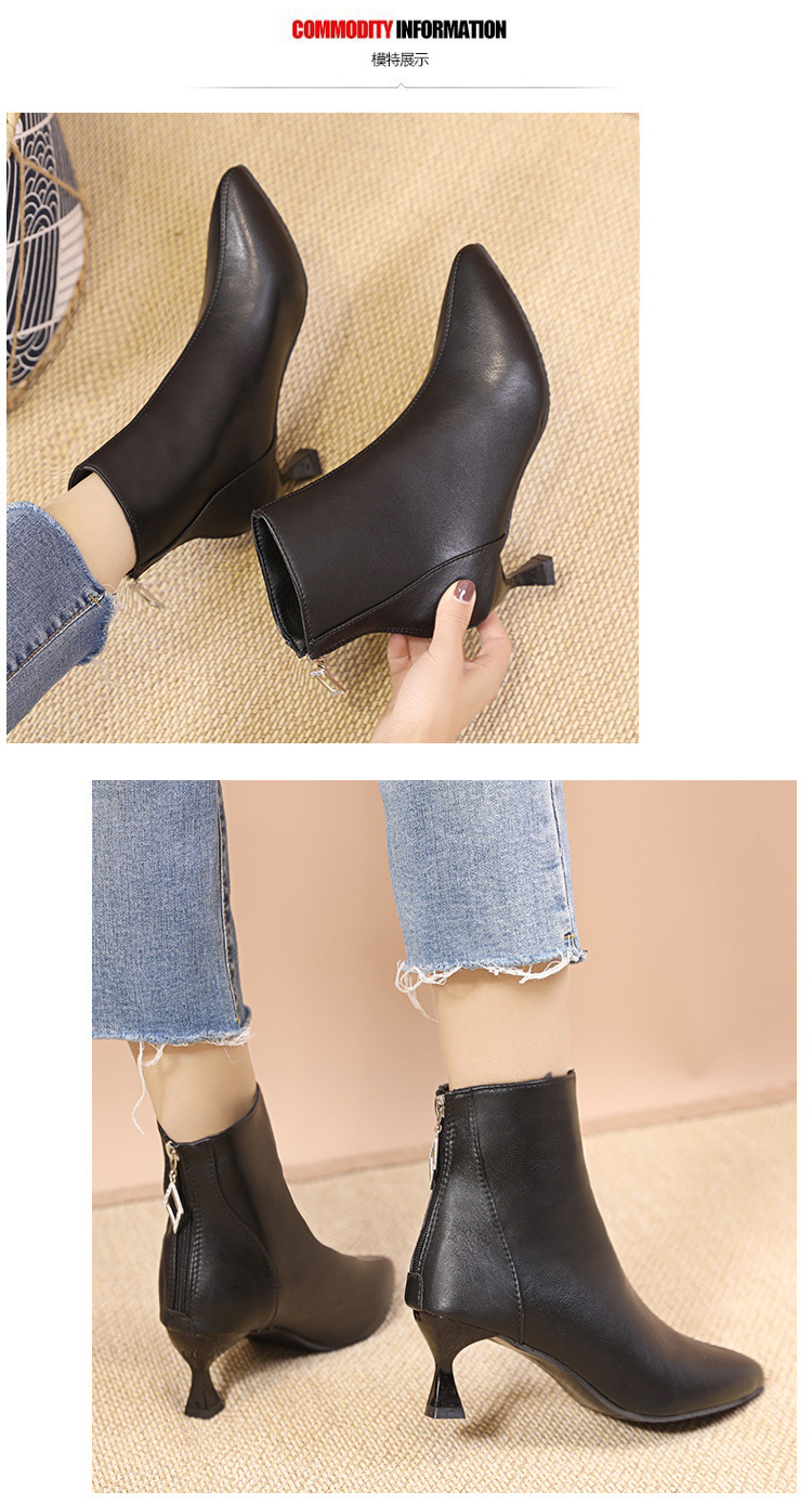 부드러운 가죽 짧은 부츠 여성 얇은 부츠 2023 가을 및 겨울 새로운 한국 뾰족한 기모 하이힐 얇은 뒤꿈치 다목적 마틴 부츠스토어 가기