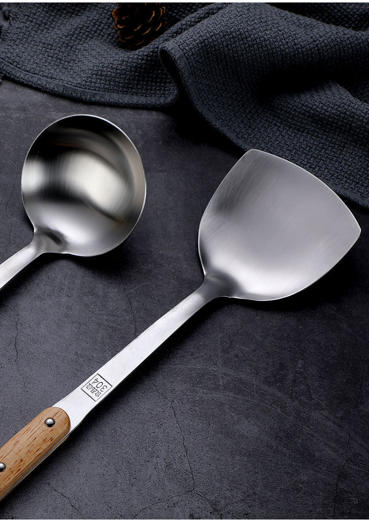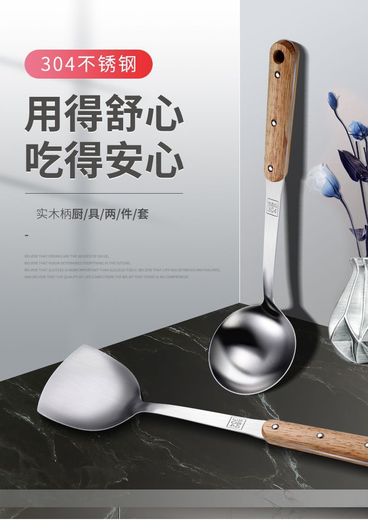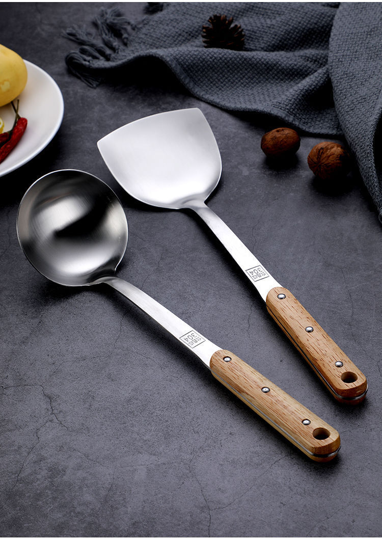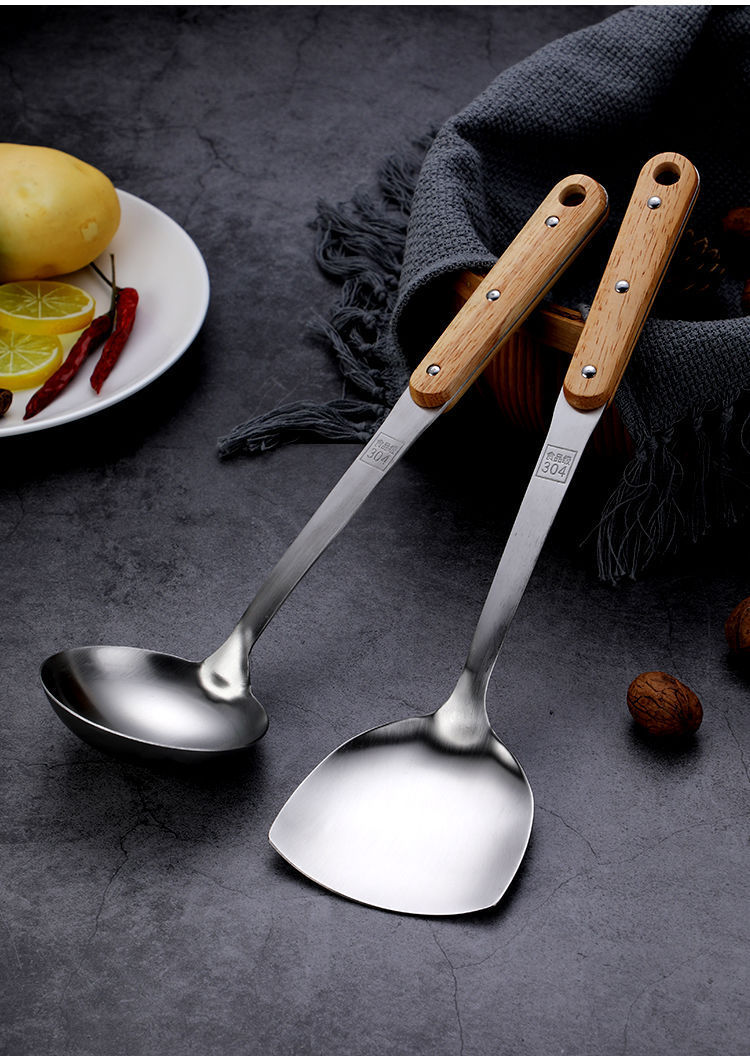 스테인레스 스틸 주걱 나무 손잡이 주걱 도매 3cm 비 자기 죽 숟가락 주걱 요리 주걱 키트