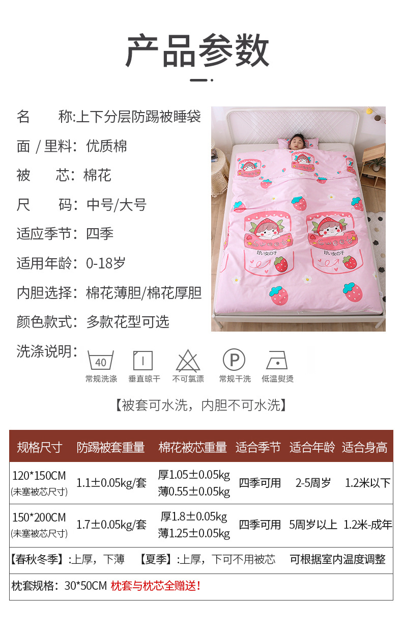 어린이 슬리핑 백 안티 킥 퀼트 아티팩트 어린이 및 초등학생 코튼 퀼트 가을과 겨울 두꺼운 일정한 온도 사계절 유니버설스토어 가기