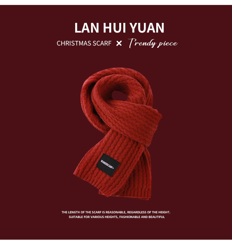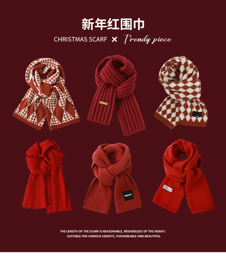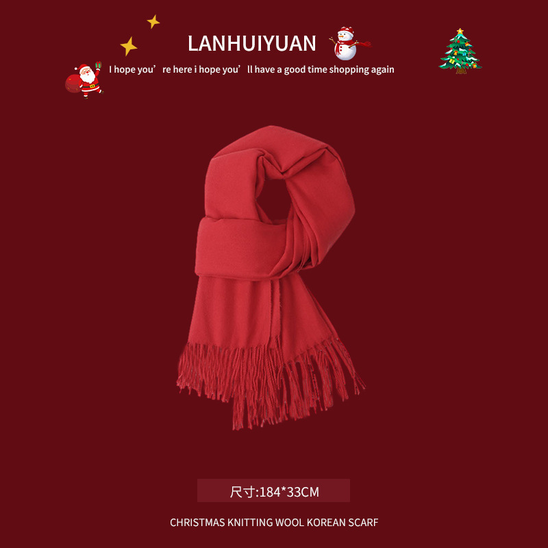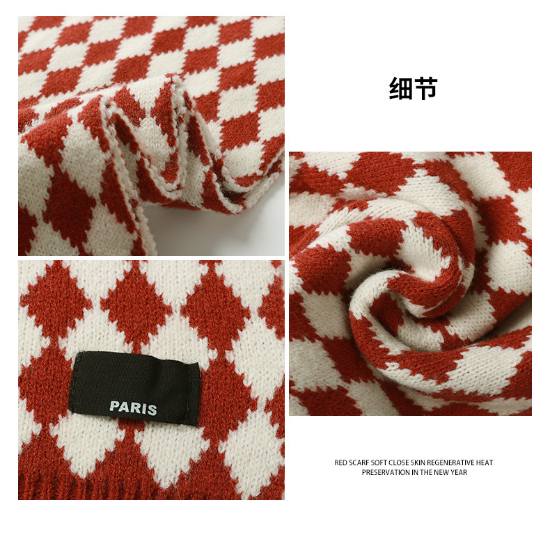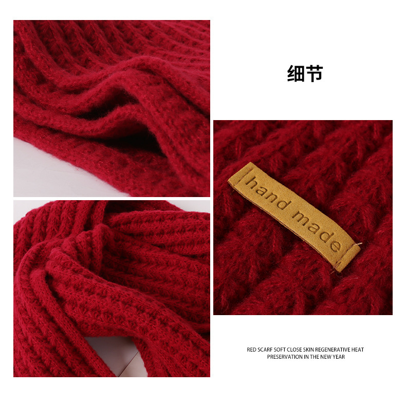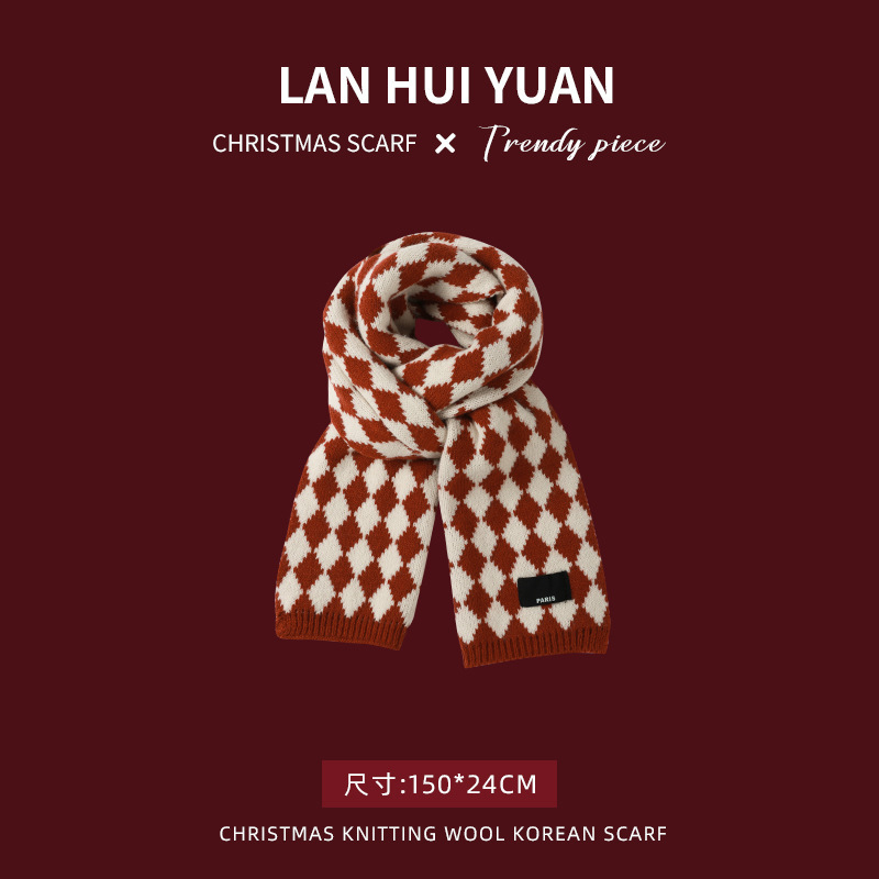 붉은 크리스마스 니트 스카프 여자 겨울 한국식 올매치 체크 새해의 모직 목 두꺼운 따뜻한 학생 패션