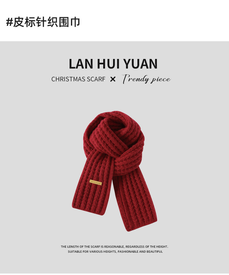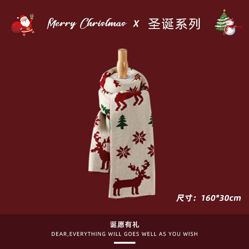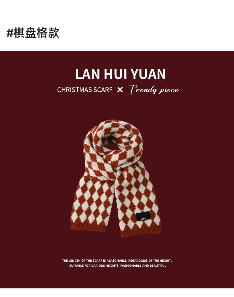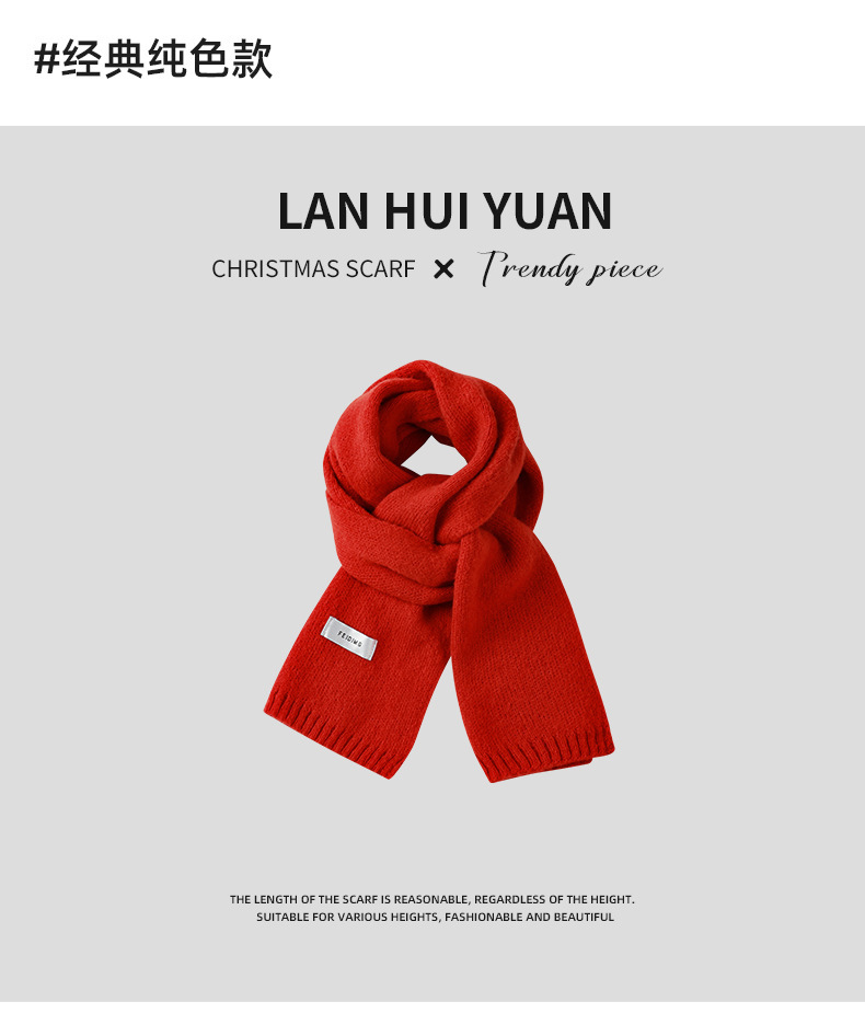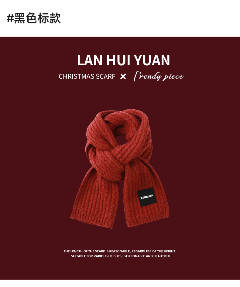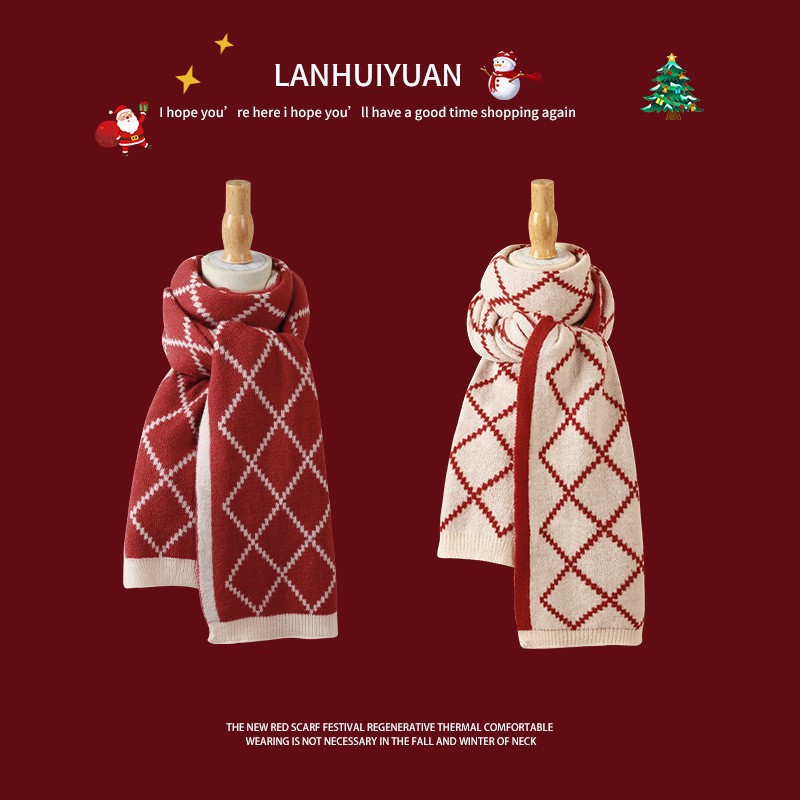붉은 크리스마스 니트 스카프 여자 겨울 한국식 올매치 체크 새해의 모직 목 두꺼운 따뜻한 학생 패션스토어 가기