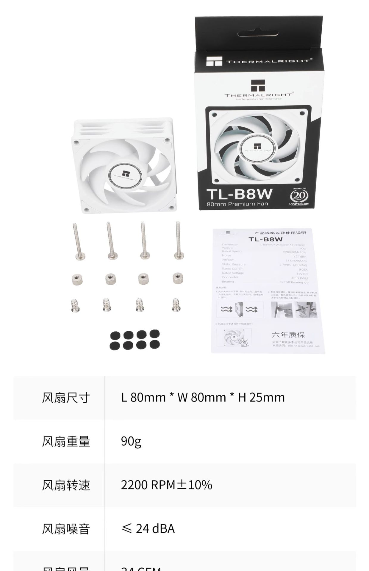 LIMIN (Thermalright) TL-B8 B8W 8cm 섀시 냉각 팬 2200 속도 PWM 팬