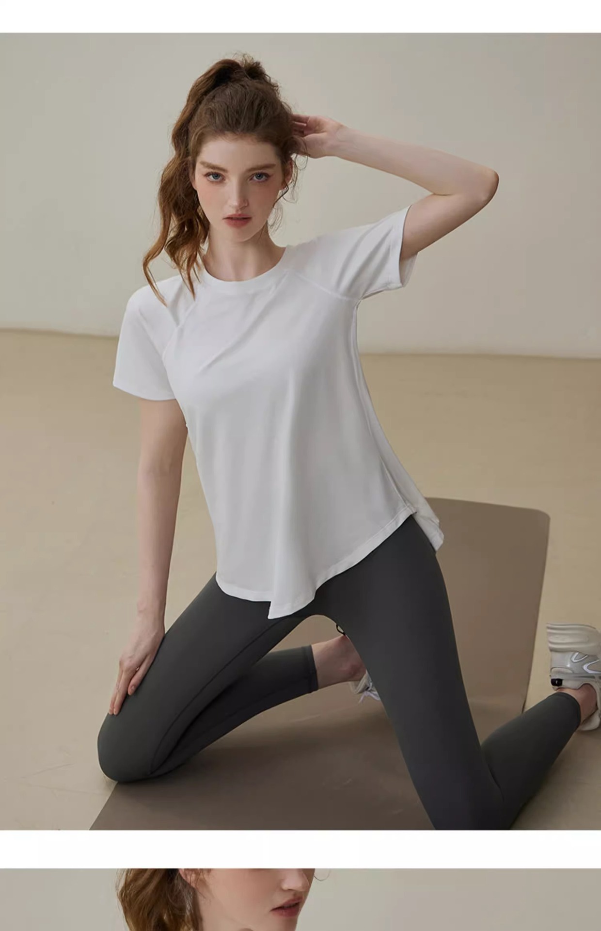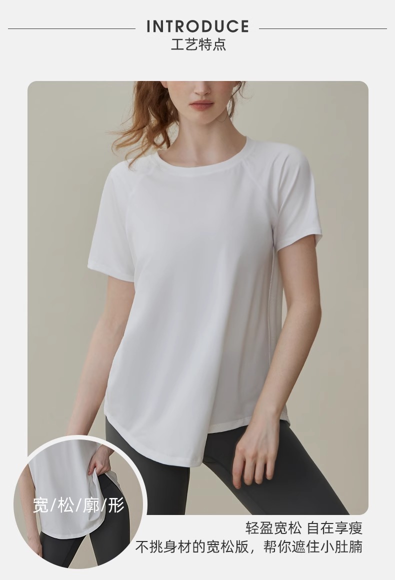 느슨한 요가 옷 여성 분할 슬리밍 스포츠 짧은 소매 필라테스 훈련 피트니스 러닝 탑 티셔츠스토어 가기
